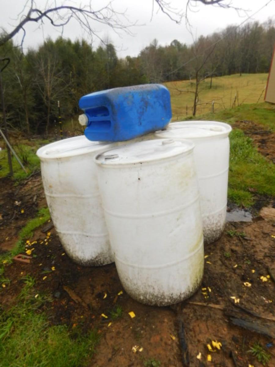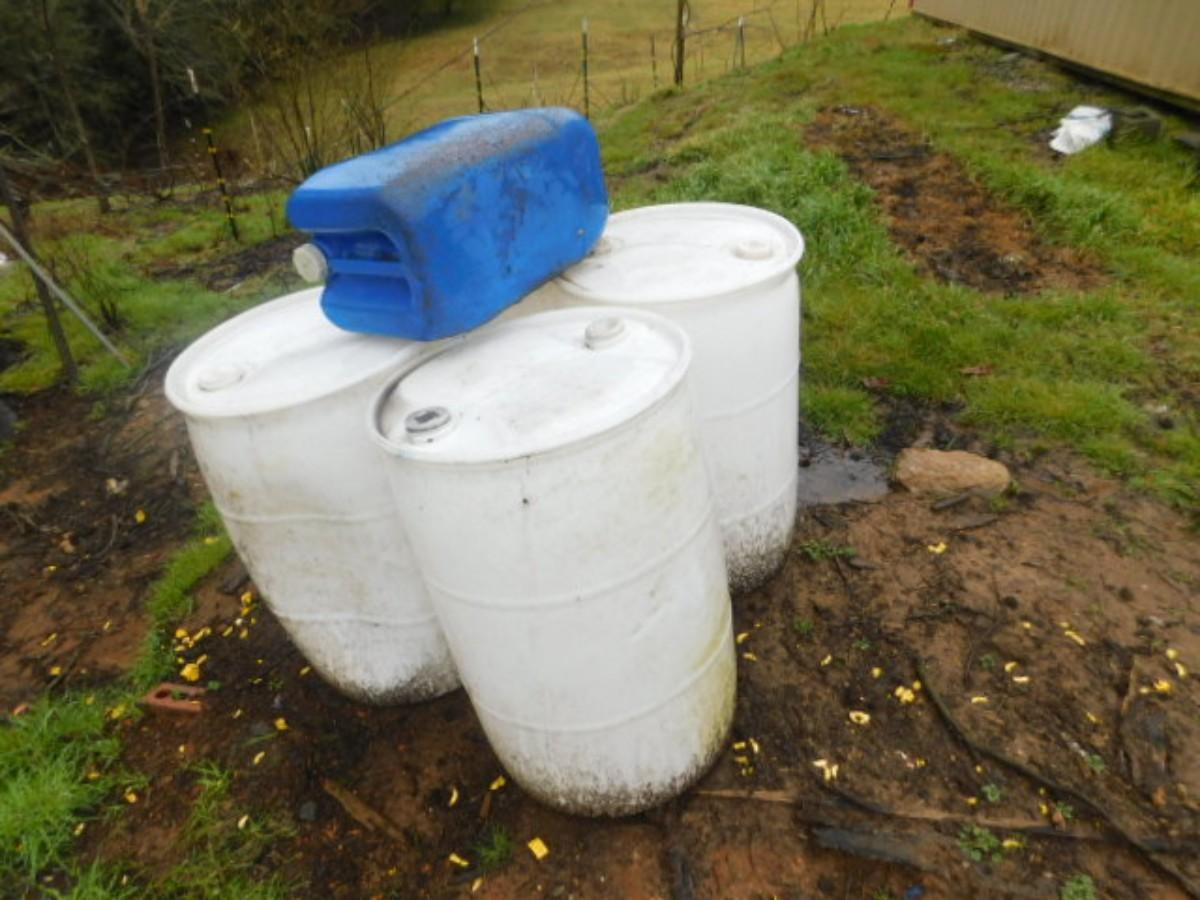 Set of 4 Plastic Barrels had a cleaning solution stored in them at one time