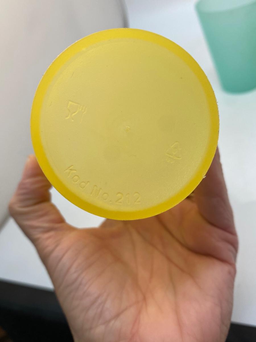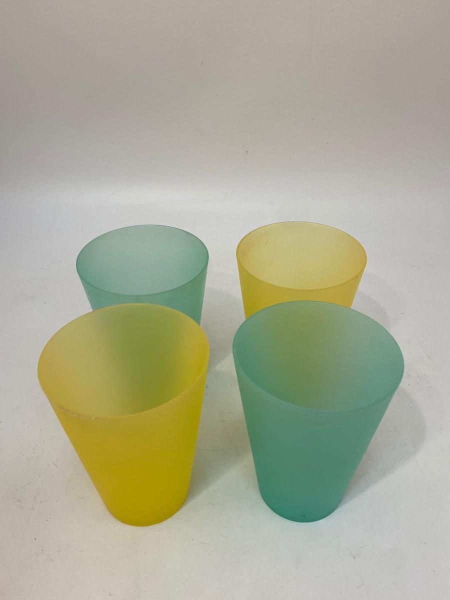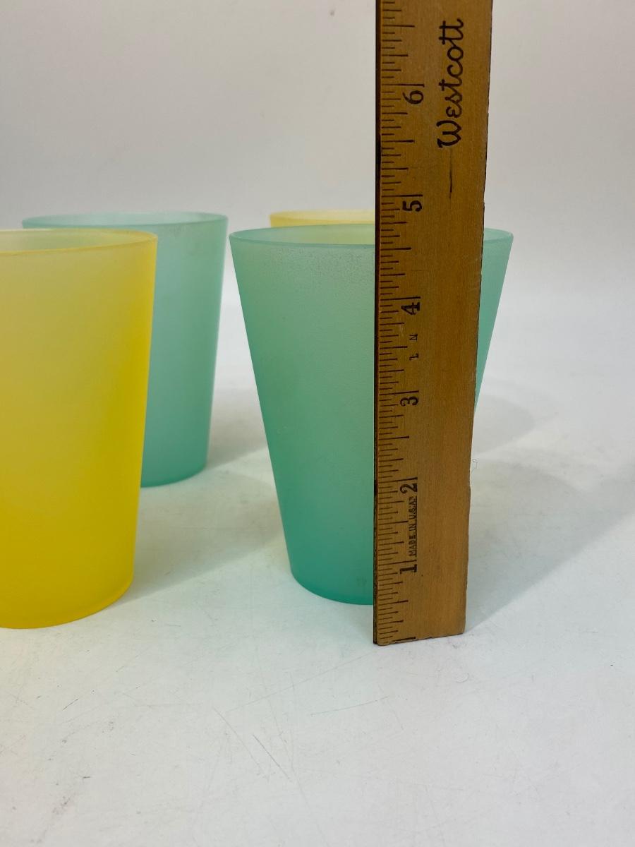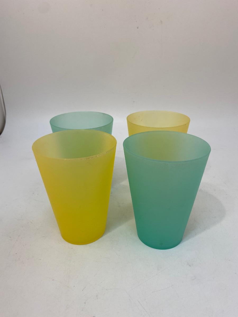 Set of 4 Plastic Tumbler Drink Glasses Yellow and Turquoise. Good used condition. About 4.5" tall