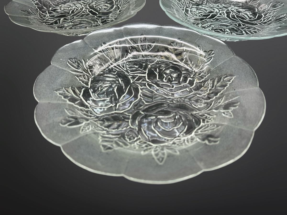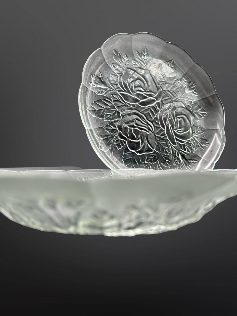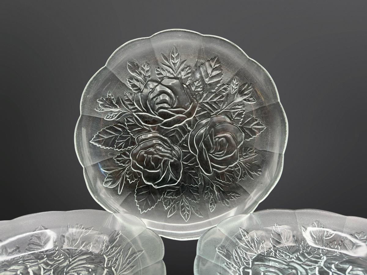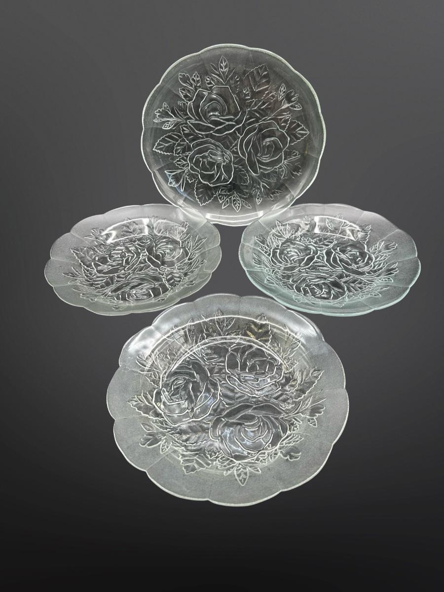 Set of 4 Pressed Glass Plates with Rose Design – Made in Indonesia