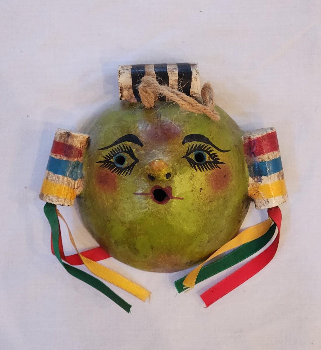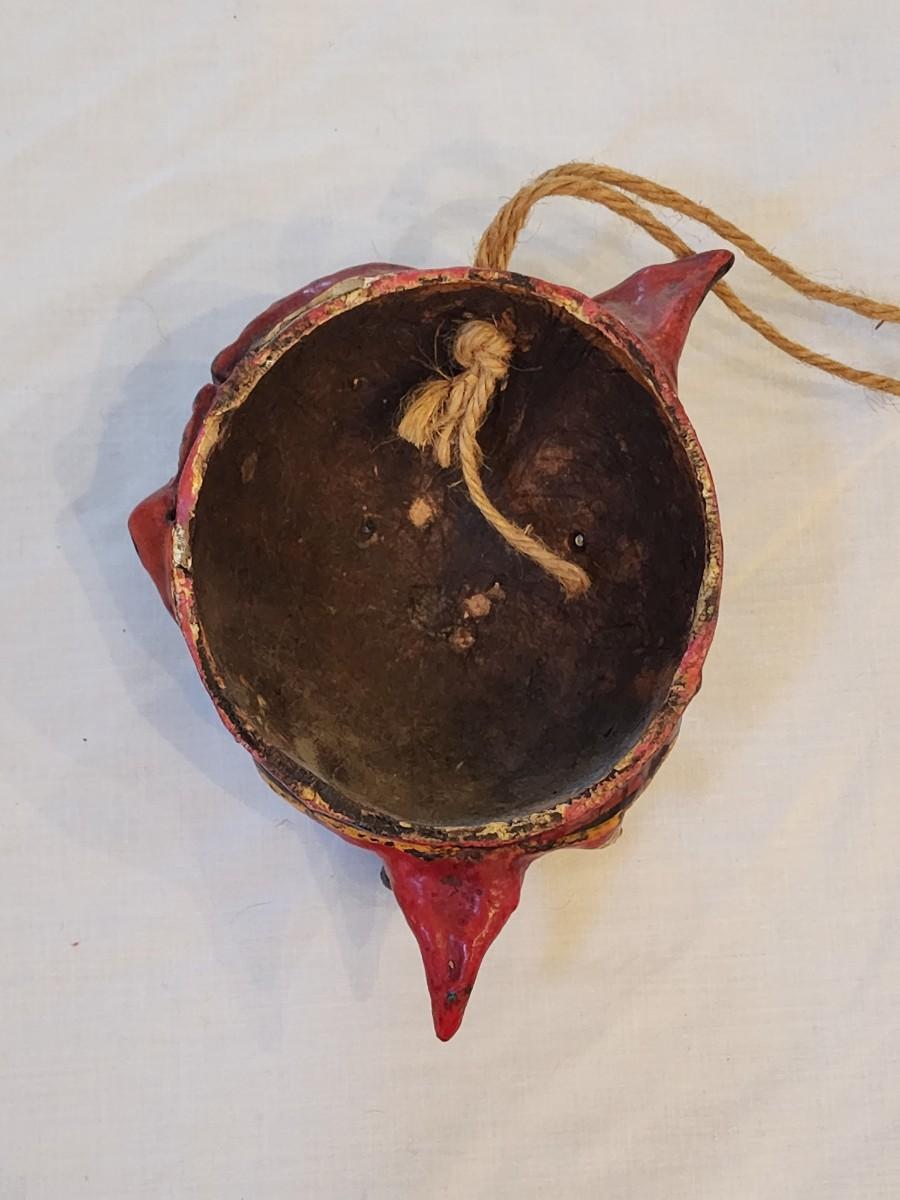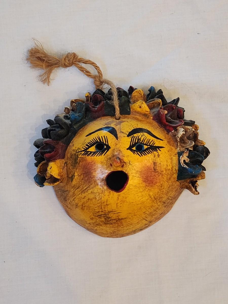 Decorative masks made from the coconut shell and then built up with clay and other seed pods or leaves.