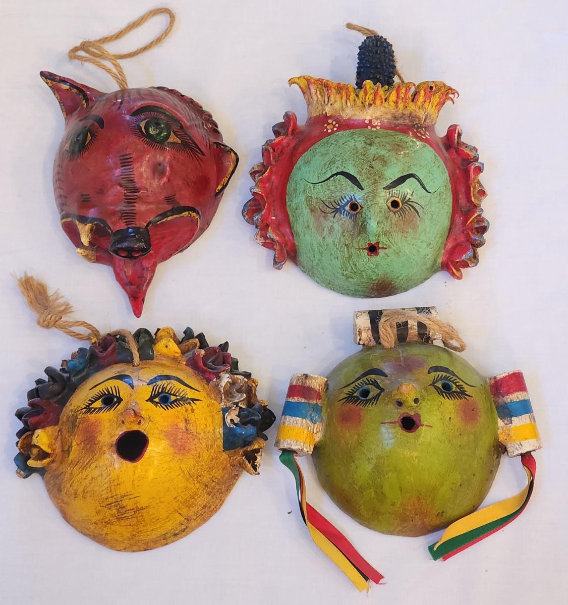 Set of 4 Vintage Mexican Folk Art Coconut Shell Masks