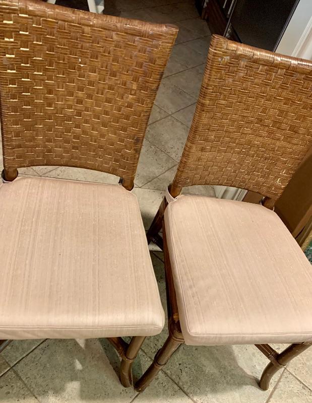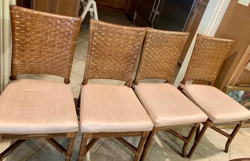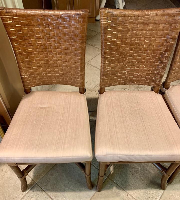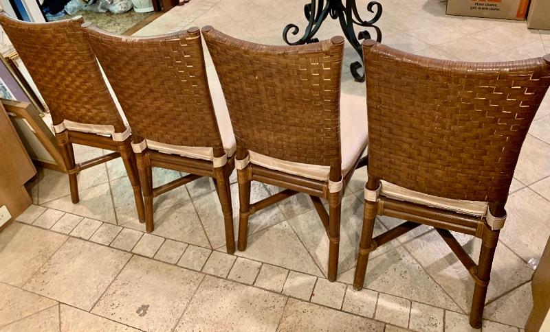 Set of 4 Rawhide Leather Woven Chair’s / Removable Zippered  Seat Cushions
