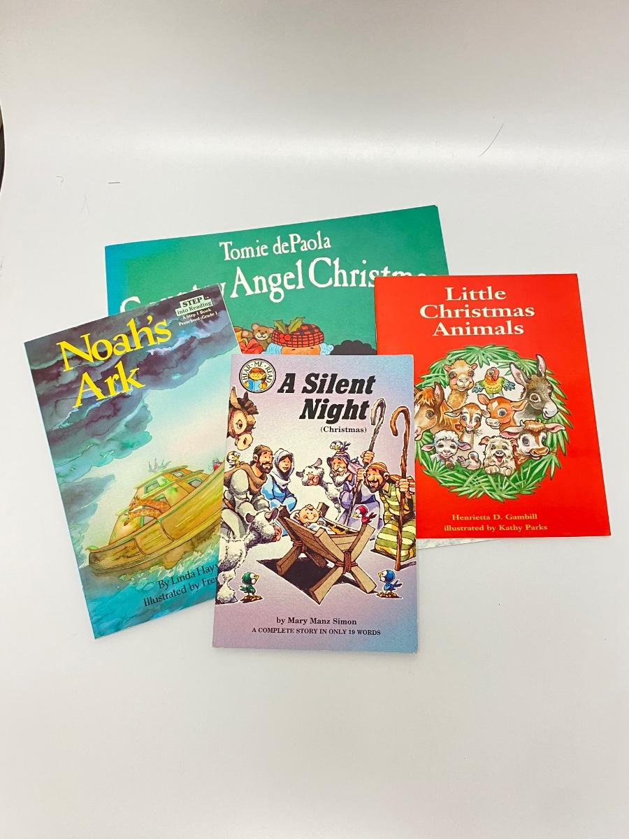 Ste of 4 Religious themed children's books. Most are Christmas related, one is about Noah's Ark. Good condition.