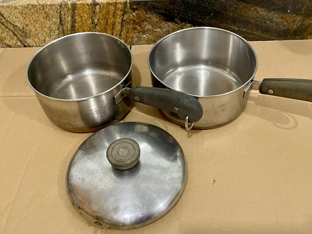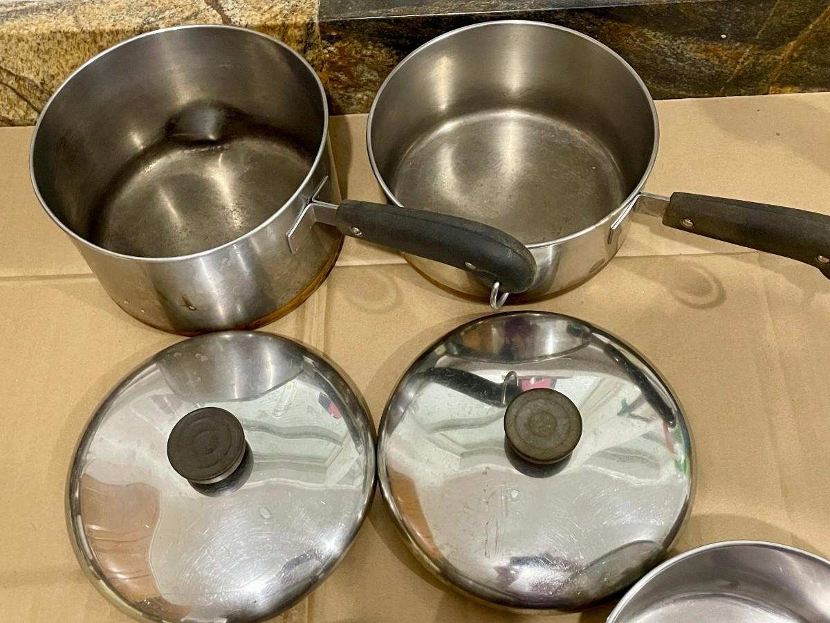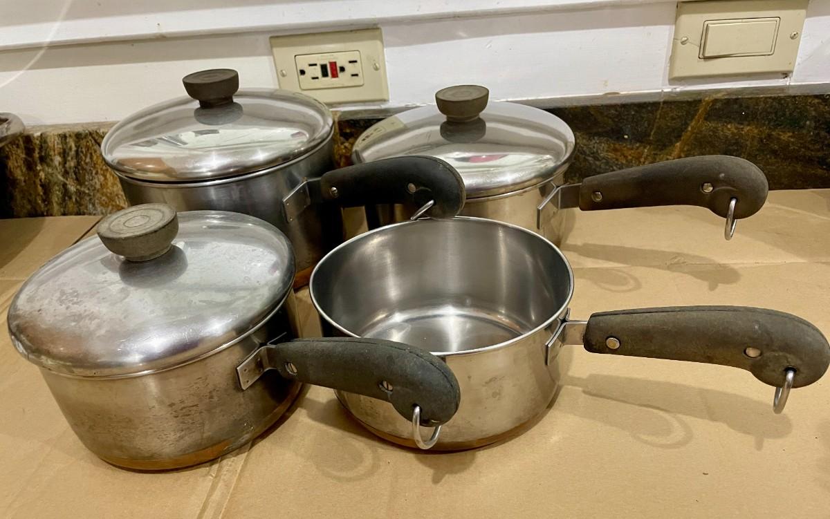 Set of 4 Revere Ware pots + 3 matching lids