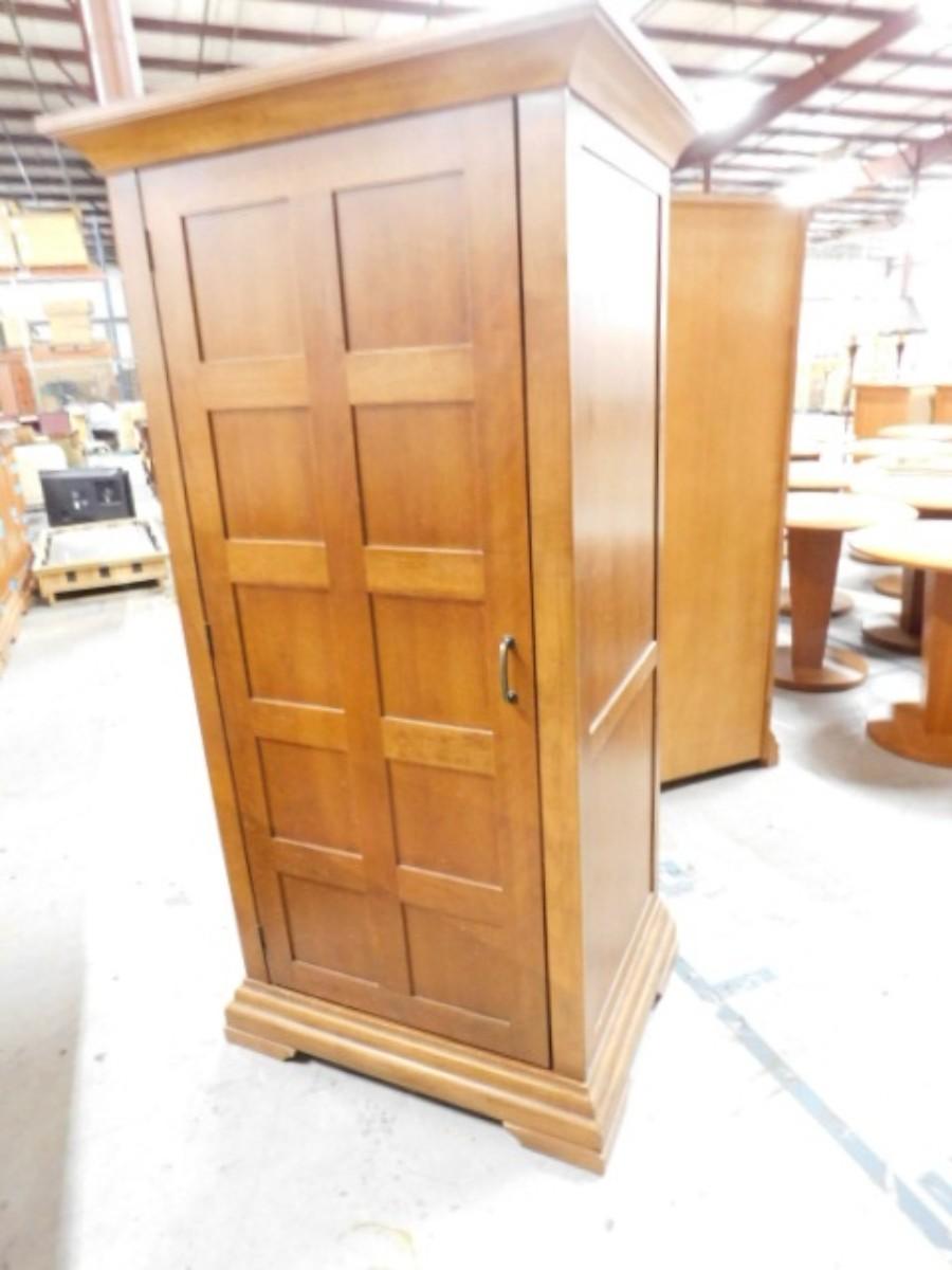 Set of 4 Rustic Arts and Crafts Design Single Door Armoire Cabinets may have a removable safe box on shelf. Bidder is buying four units. Expect some wear or scratches to the finish. Shipping option available via freight or local mover at Buyer's expense. Buyer must have all shipping scheduled within the stated dates and times of pickup. Recommended local mover is Beaty Bros. Moving 828-201-2982