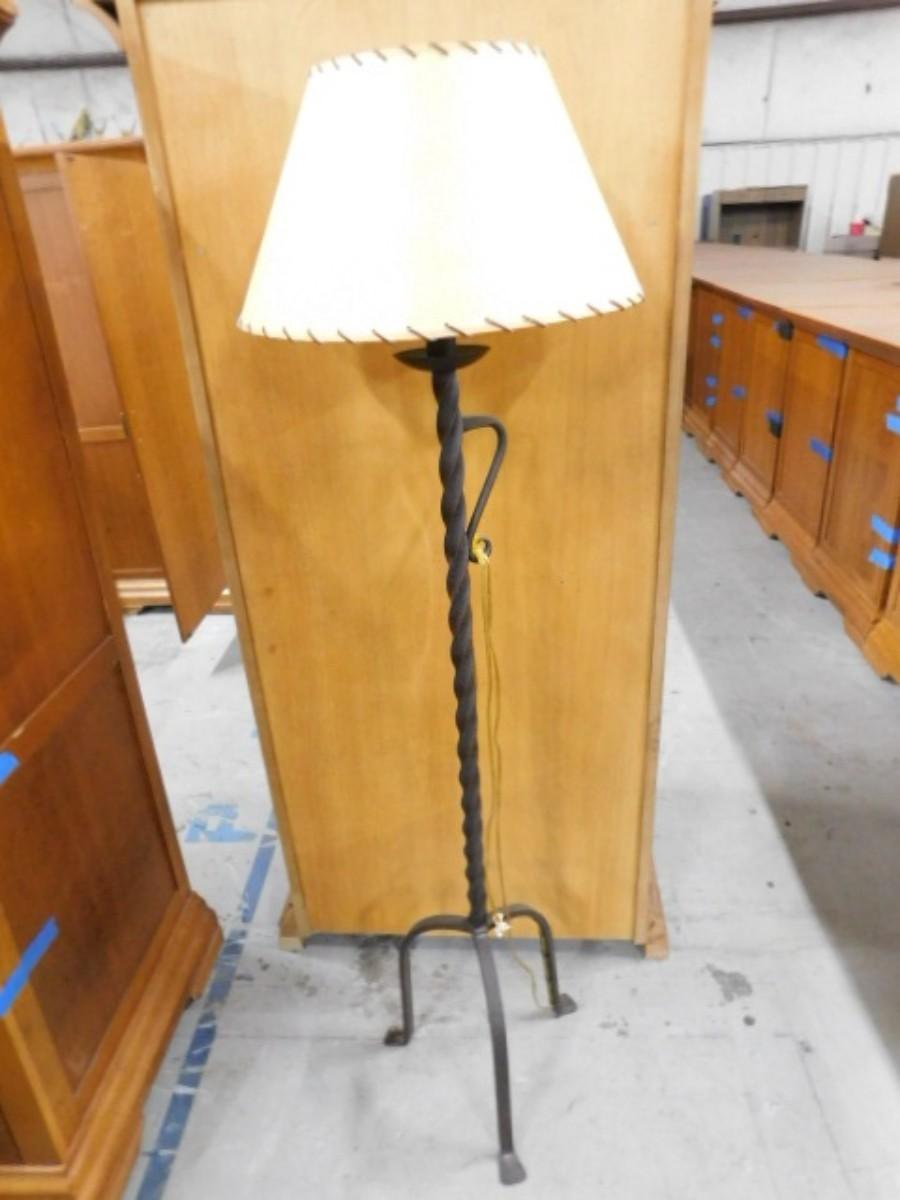 Set of 4 Rustic Wrought Iron Twist Post Tri-Ped Base Floor Lamp No Shades.