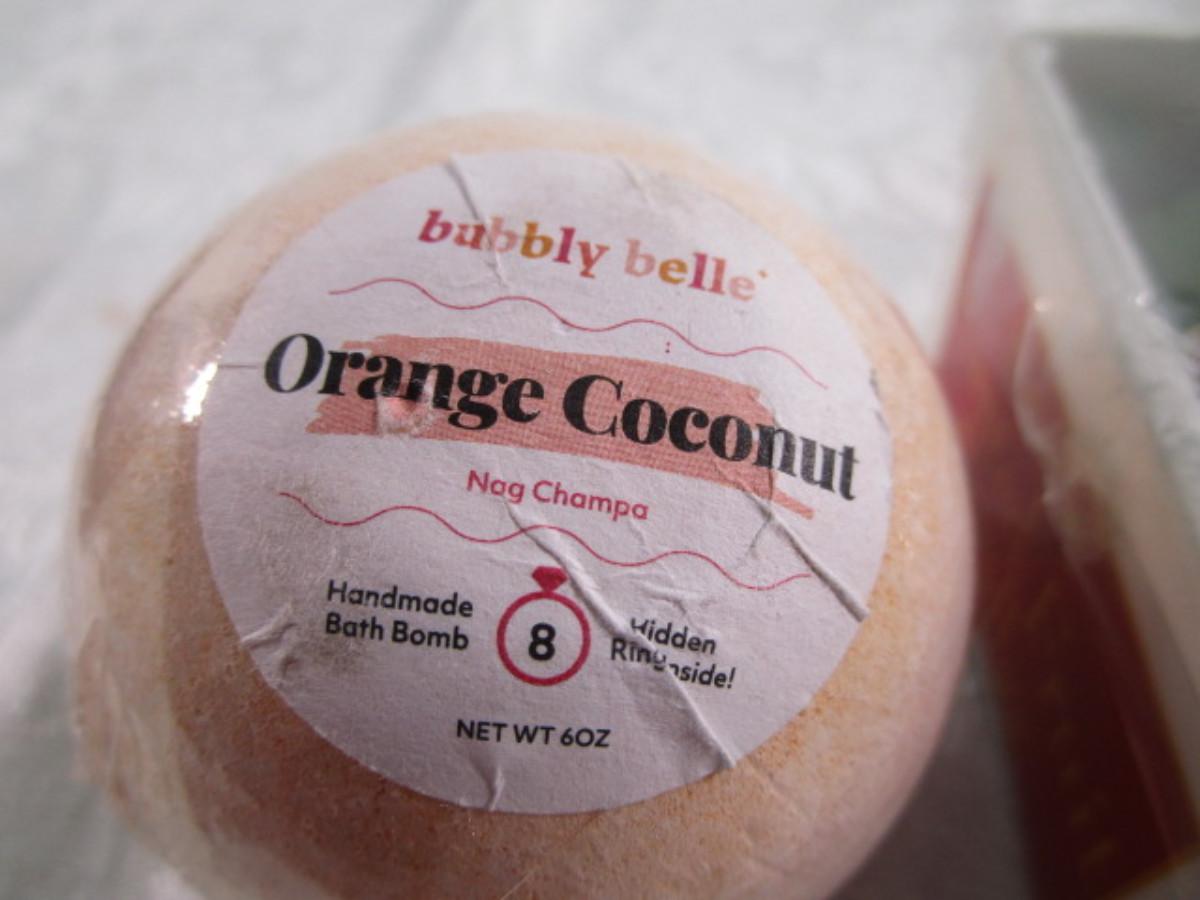 Candles are fruit shaped, Bath bomb isBubbly Bell Orange Coconut & has ring inside (M)