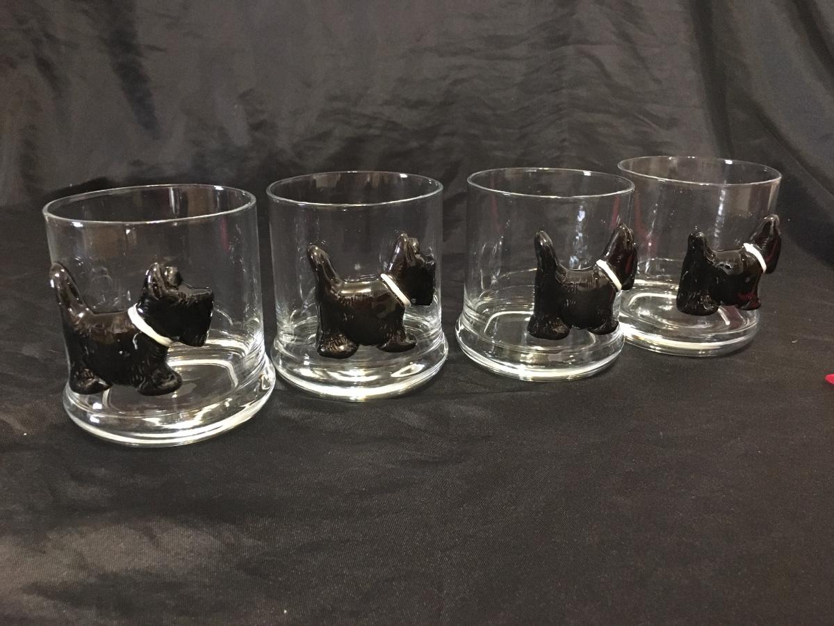 Set of 4 Scottish Terrier Drinking Glass Tumblers Black Scottie Dog