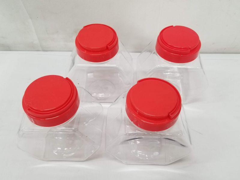 Set of 4 Small Plastic Containers - Red Lids - New