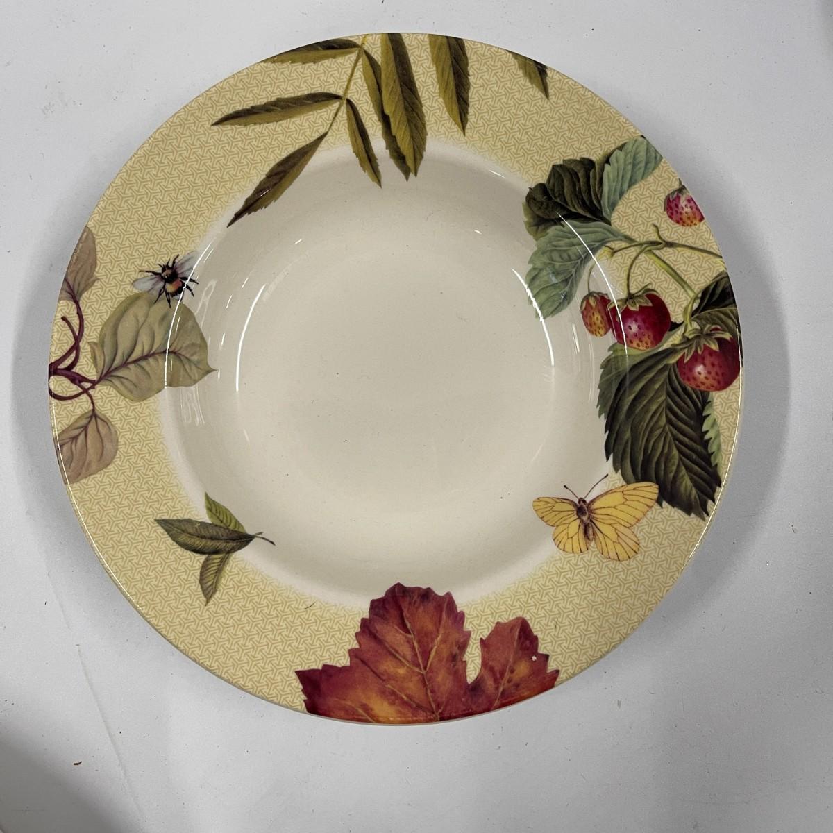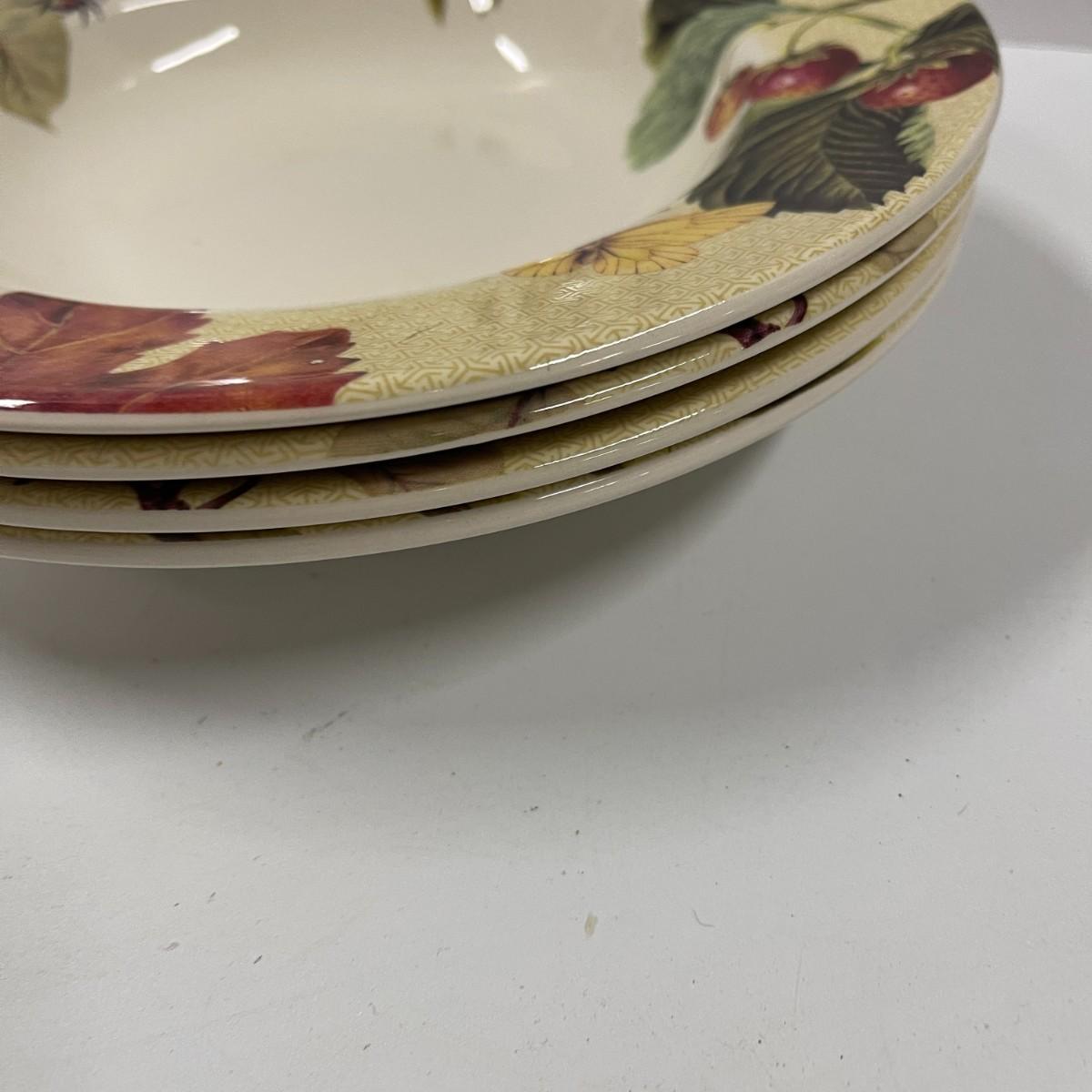 Set of 4 Spode Fruit Haven wide rimmed soup bowls. 9"