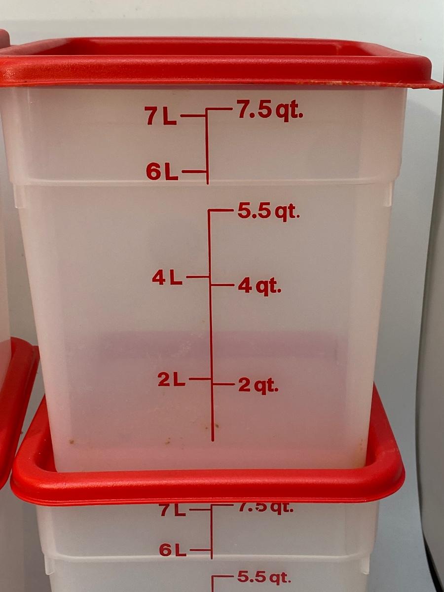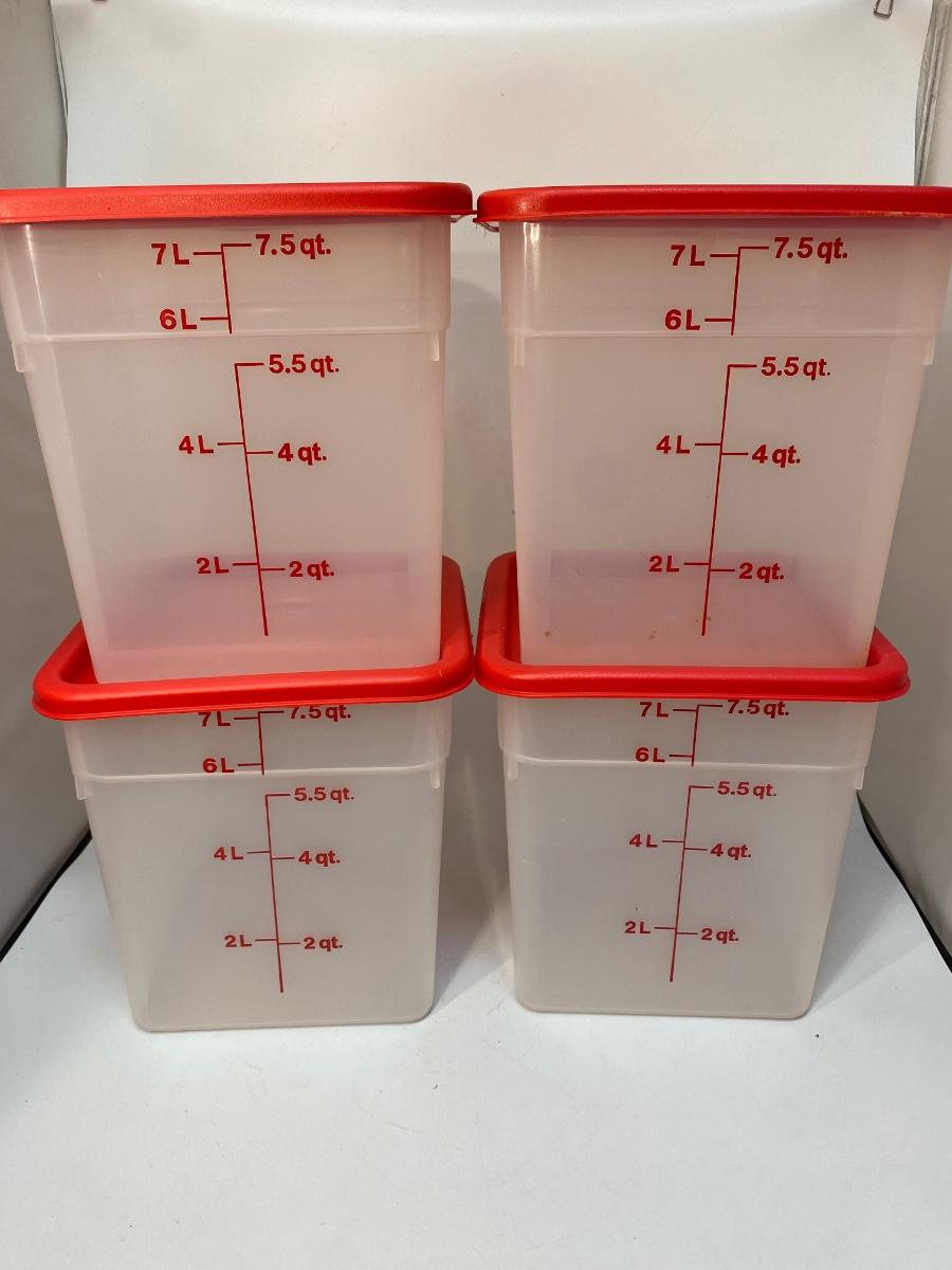 Set of 4 Square 7.5qt Food Storage Containers. Good condition.