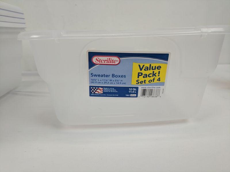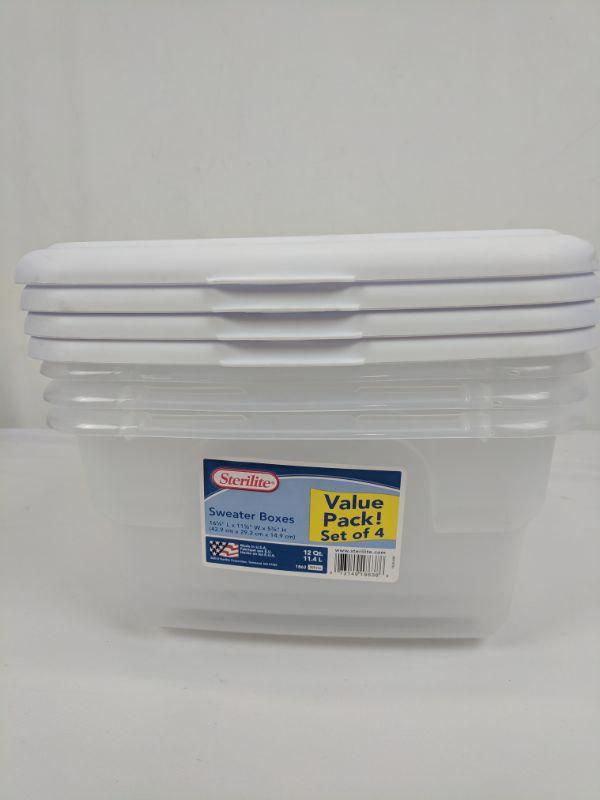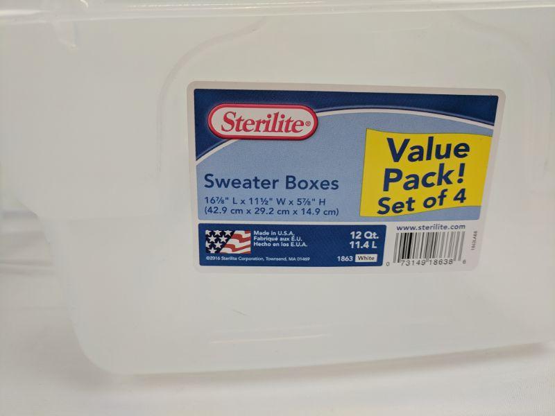 Set of 4 Sweater Boxes Sterilite, 12Qt. 11.4L, Clear w/White Lid - New