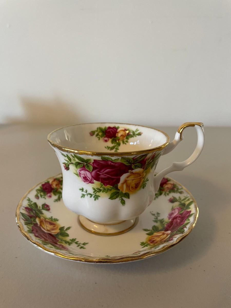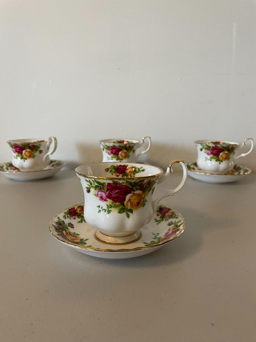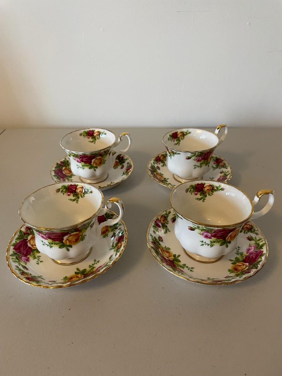 Set of 4 Tea Cups and Saucers - Royal Albert Bone China - "Old Country Roses"