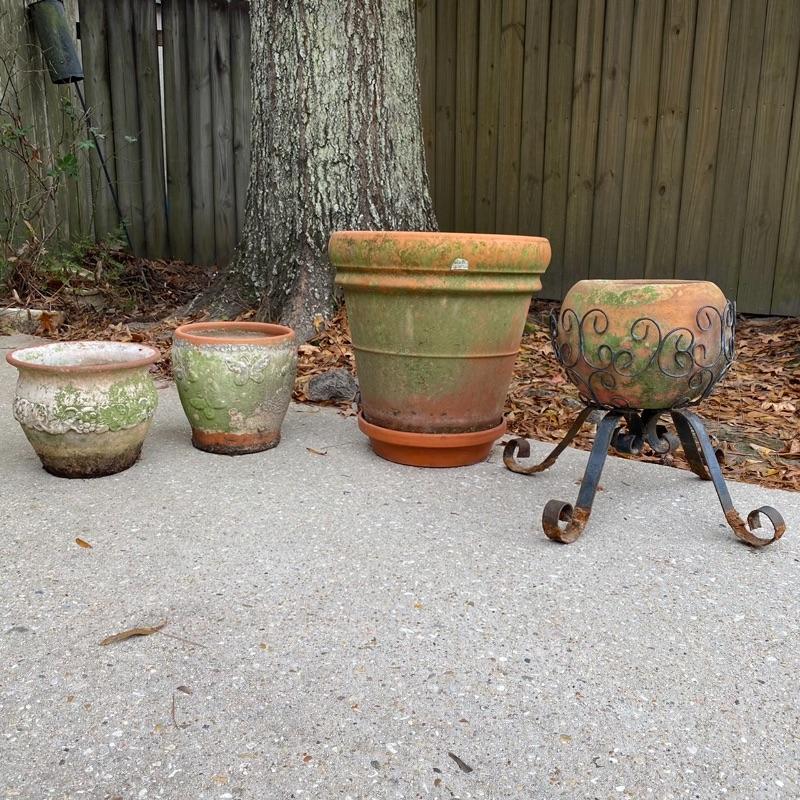 Set of 4 Heavy Terra Cotta Outdoor Pots