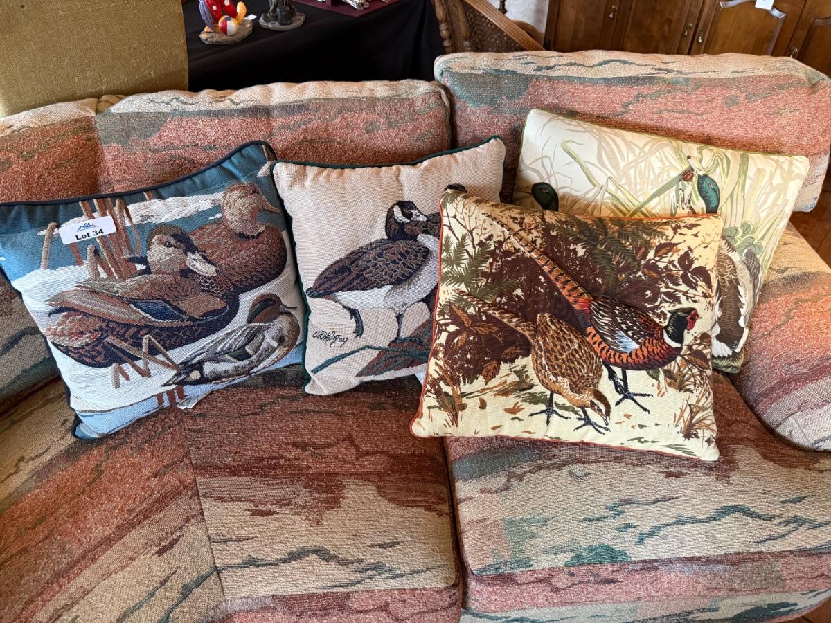 Set of 4 throw pillows - 1 Pheasant & 3 duck themed