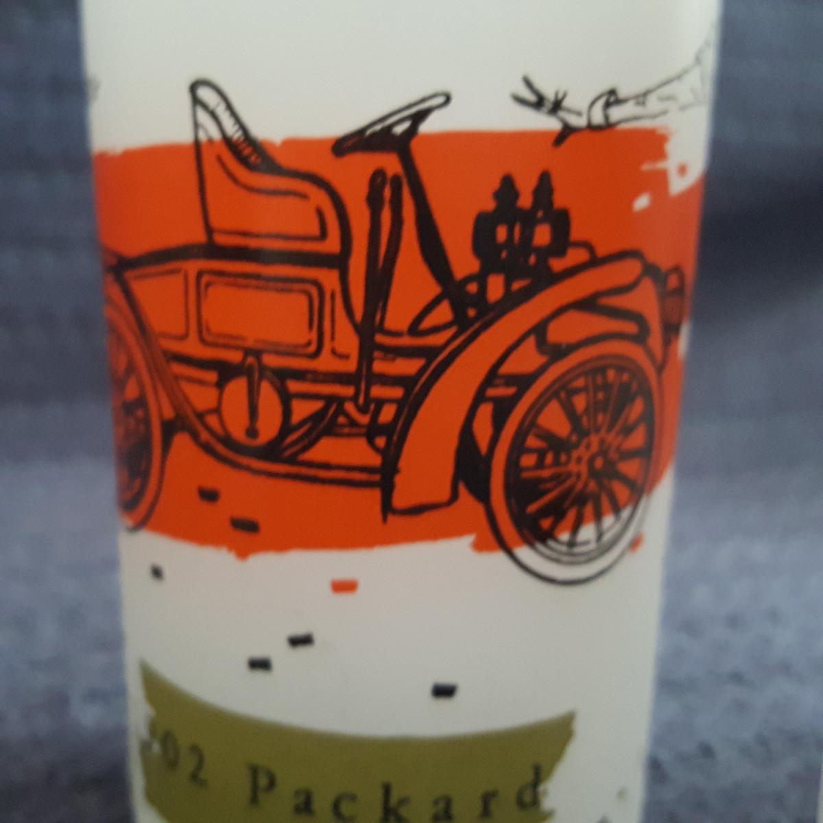 This auction lot is for a set of 4 Vintage Anchor Hocking, Clear Frosted “Antique Autos” Classic Cars Drinking Glasses. They measure about 6.5-inches by about 2.75-inches, each holds about 16oz. This set includes a 1906 Autocar, 1913 Hudson, 1902 Packard and a 1908 Buick. No chips or cracks, appear to be unused. See pictures for design details.