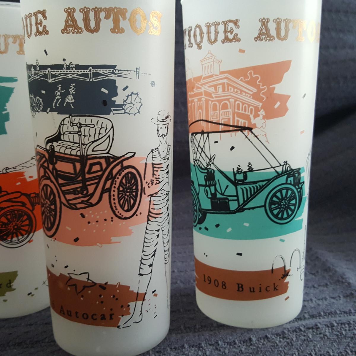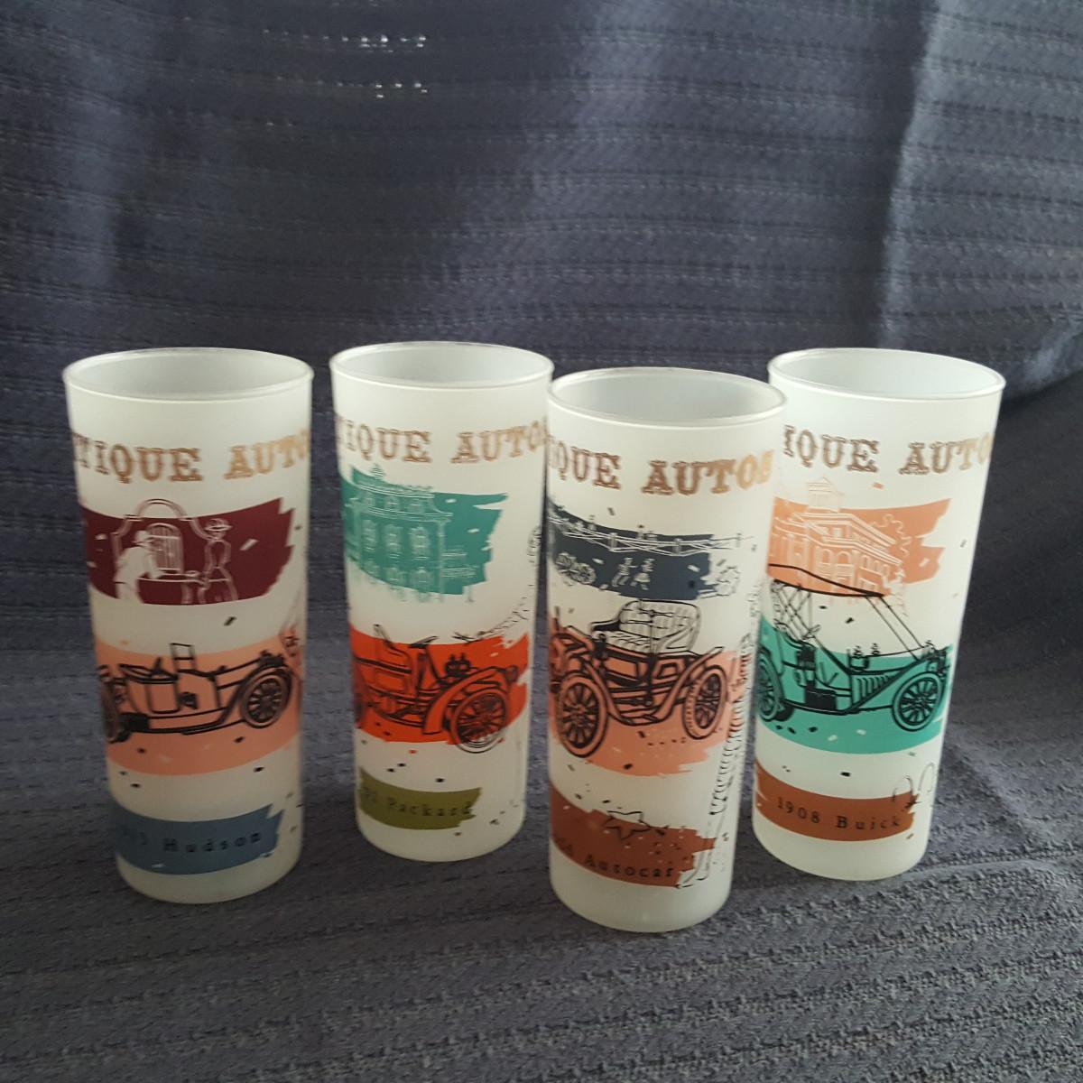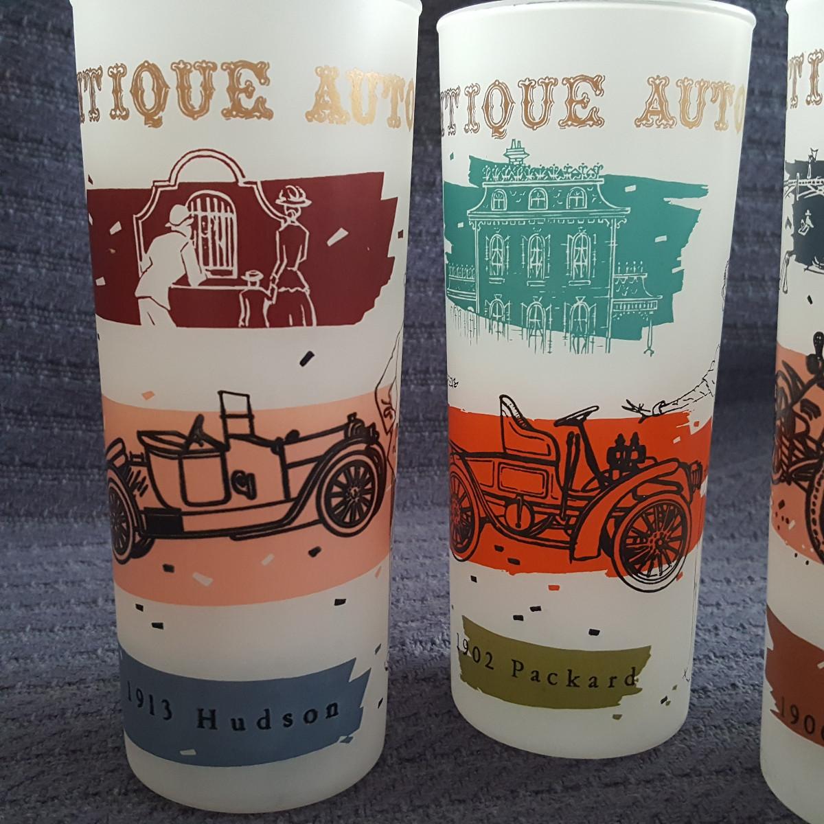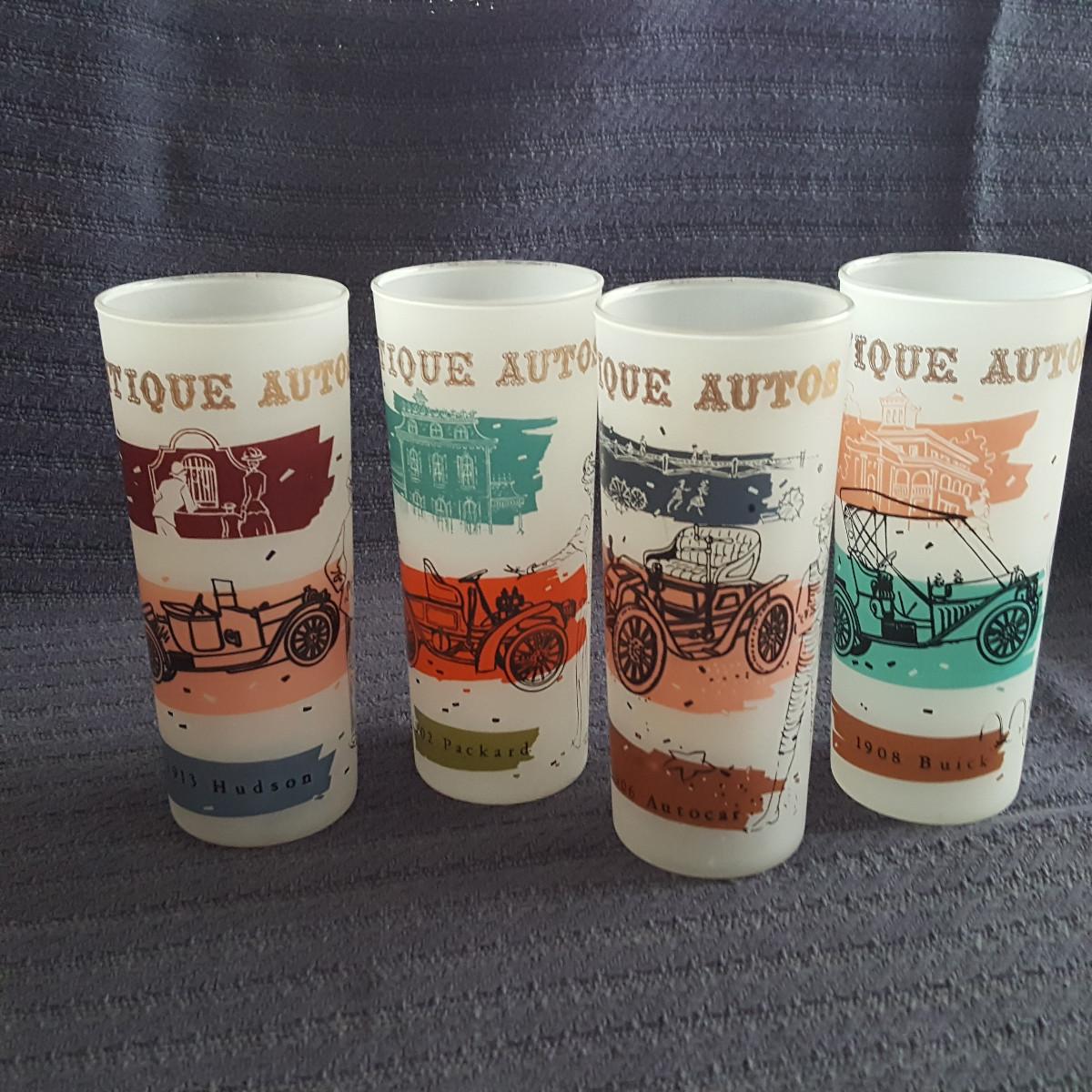 Set of 4 Vintage Antique Autos Drinking Glasses