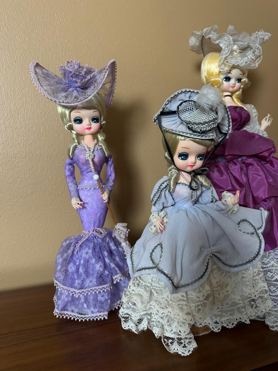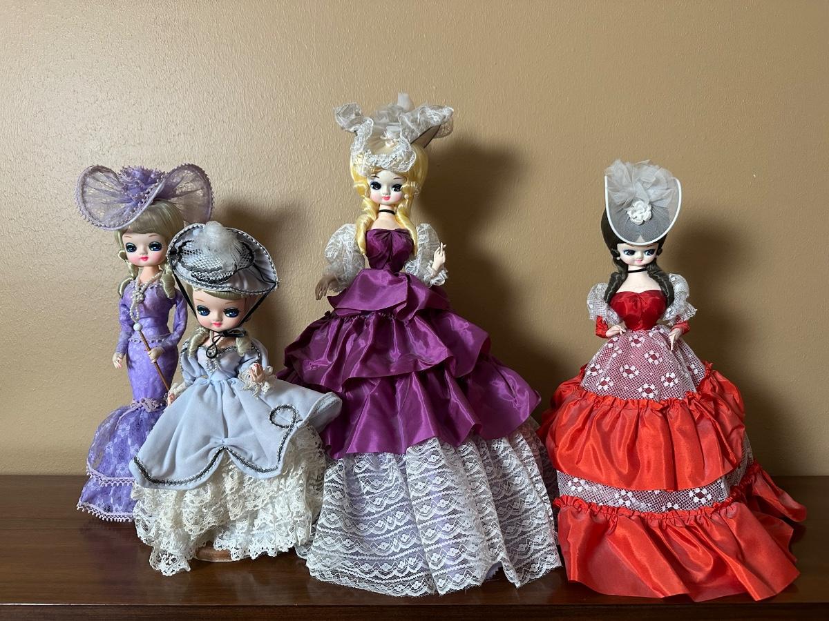Set of 4 Vintage Big Eye Bradley Dolls in Gowns
