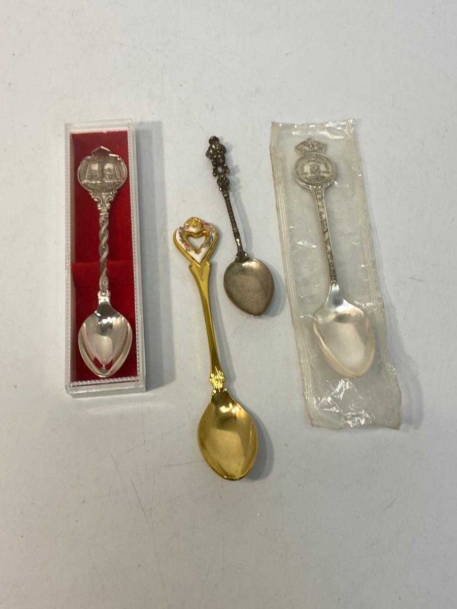 Set of 4 Vintage Collector Souvenir Spoons. All different, no sterling marks.