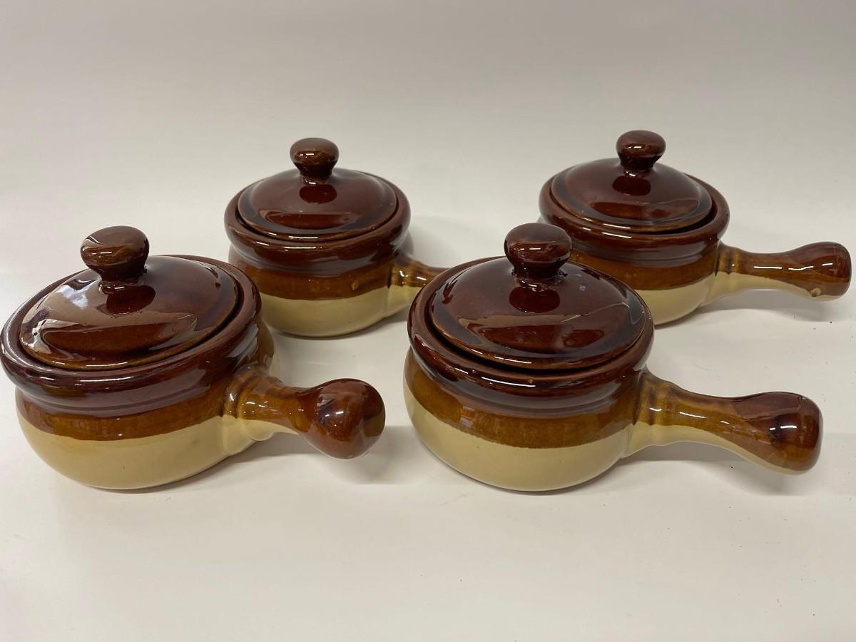 Set of 4 Vintage French Onion Soup Crocks With Lids. All, excellent condition.