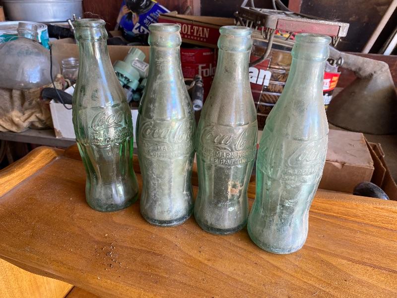Set of 4 Vintage Green Glass Coca Cola Bottles YD#019-0193