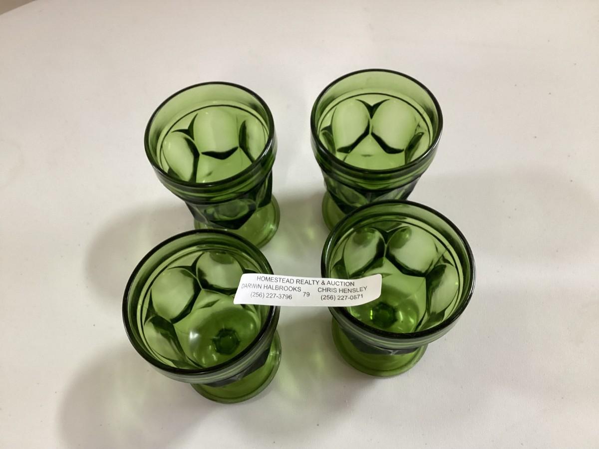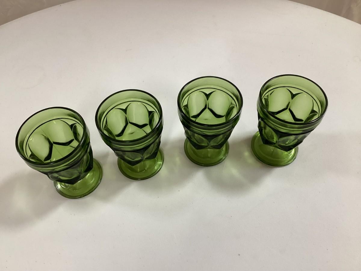set of 4 vintage green small stemmed glasses