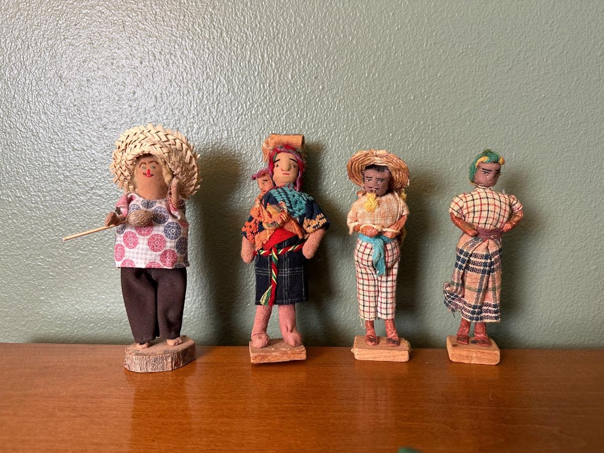 Set of 4 Vintage Handcrafted Folk Art Dolls