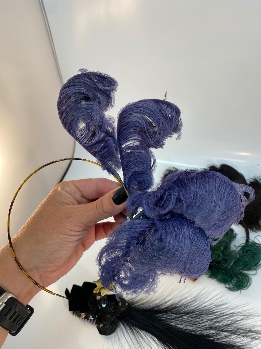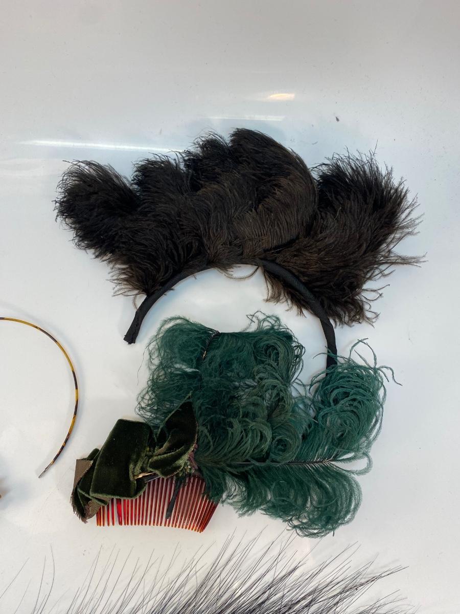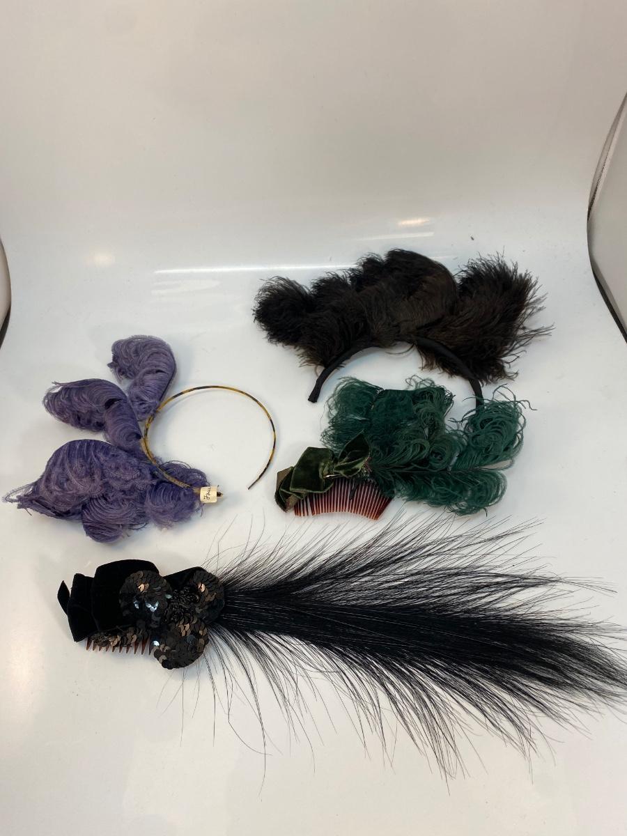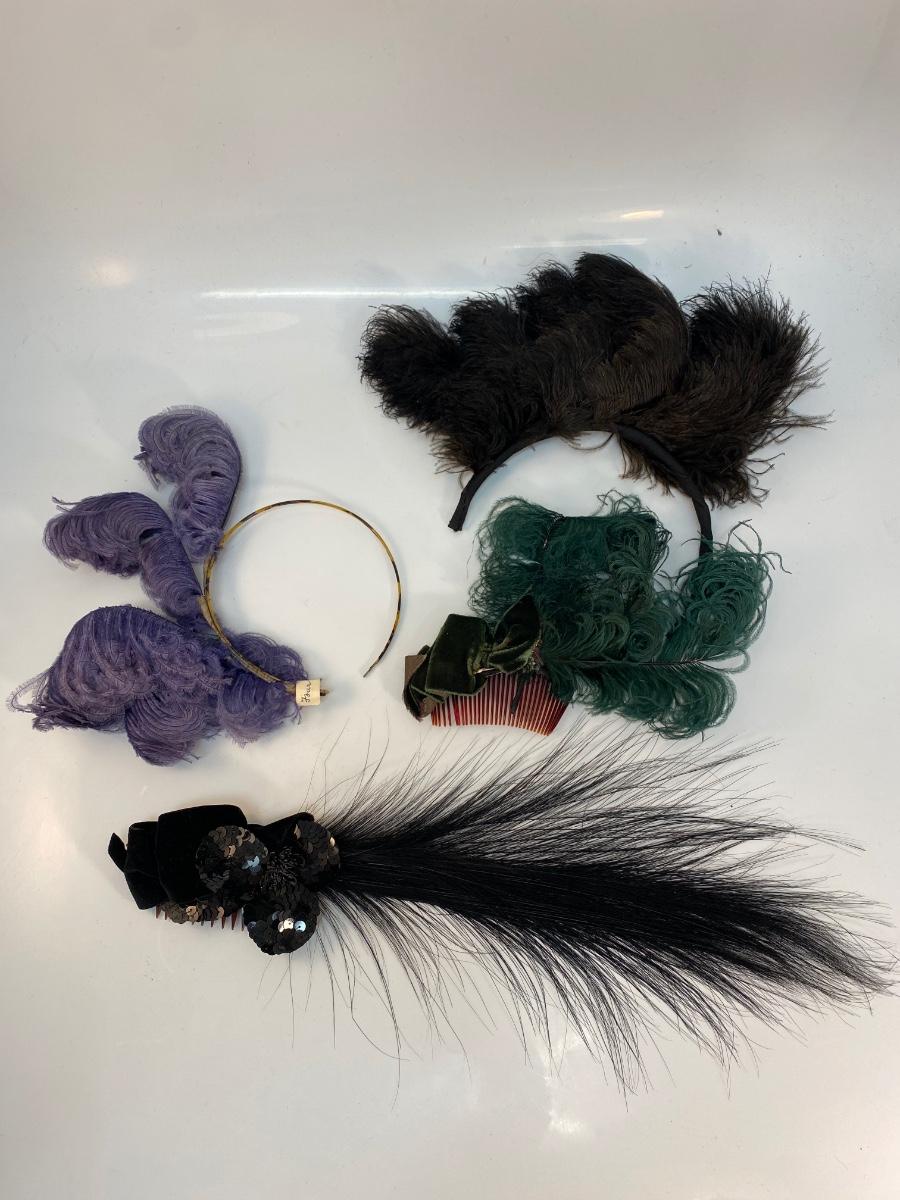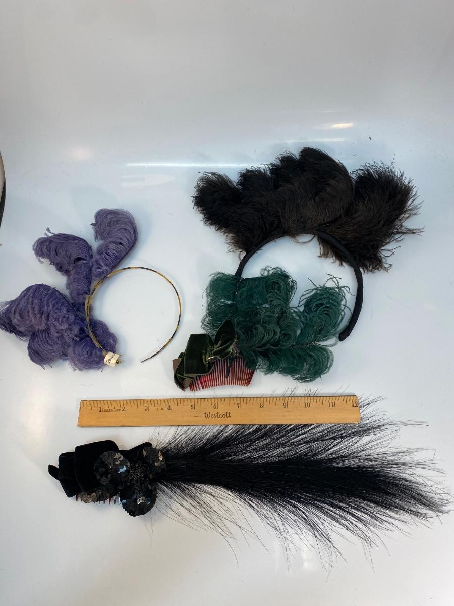 Set of 4 Vintage Handmade Feathered Hair Accessories. 2 headband and 2 comb style. In good vintage condition, can be worn.