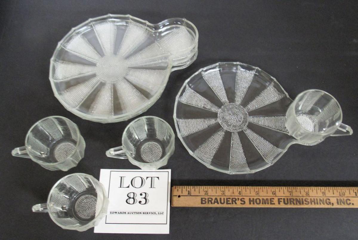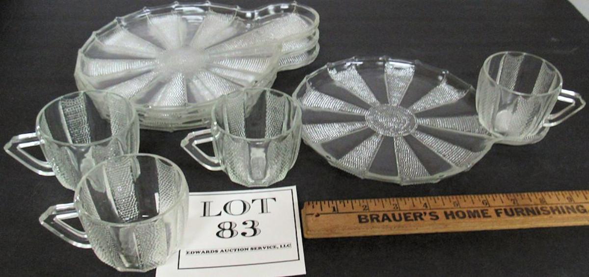 Set of 4 Vintage Jeanette Dew Drop Snack Plate/Cup Sets