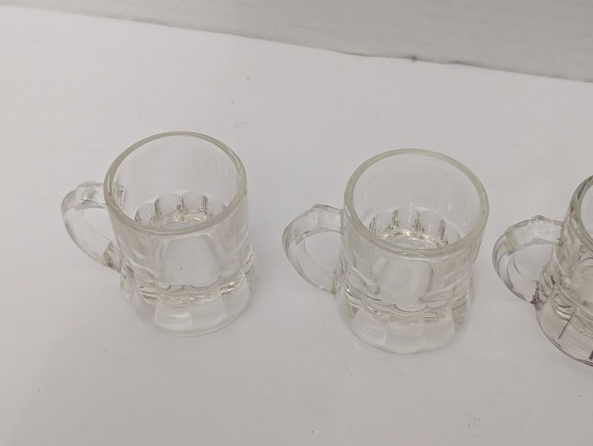 This fun set of 4 vintage miniature glass beer mugs doubles as shot glasses or novelty drinkware. Each tiny mug features a classic dimpled base design with sturdy handles, perfect for serving shots, tastings, or display in a barware collection. A charming addition for collectors or anyone who enjoys unique glassware with character.