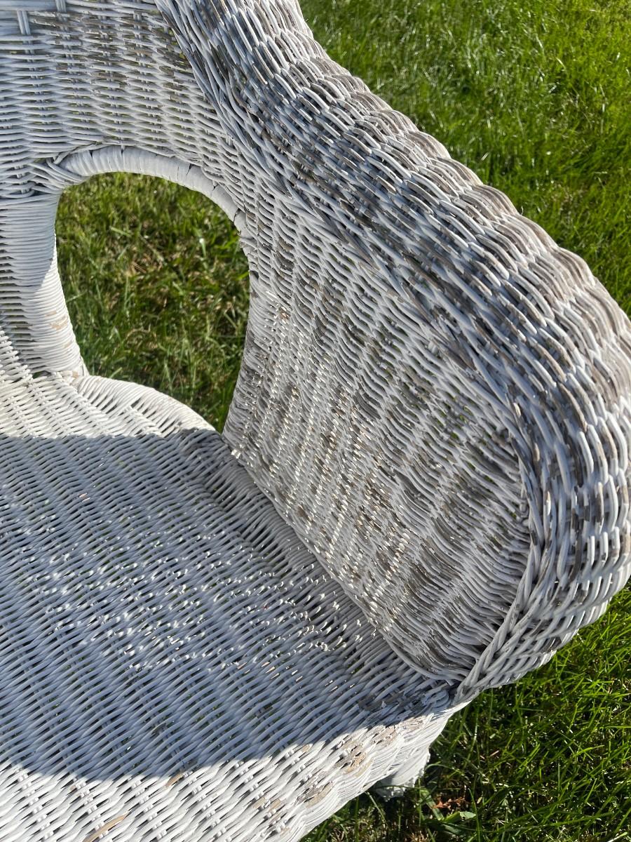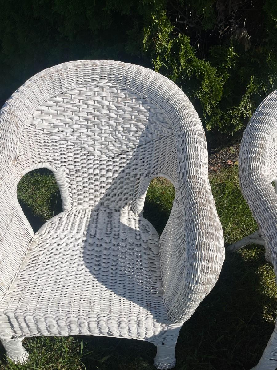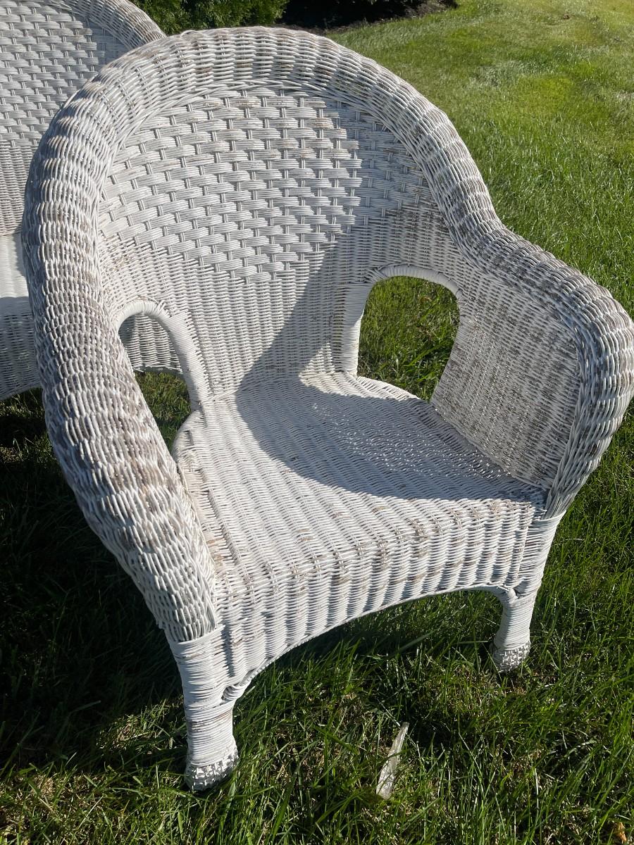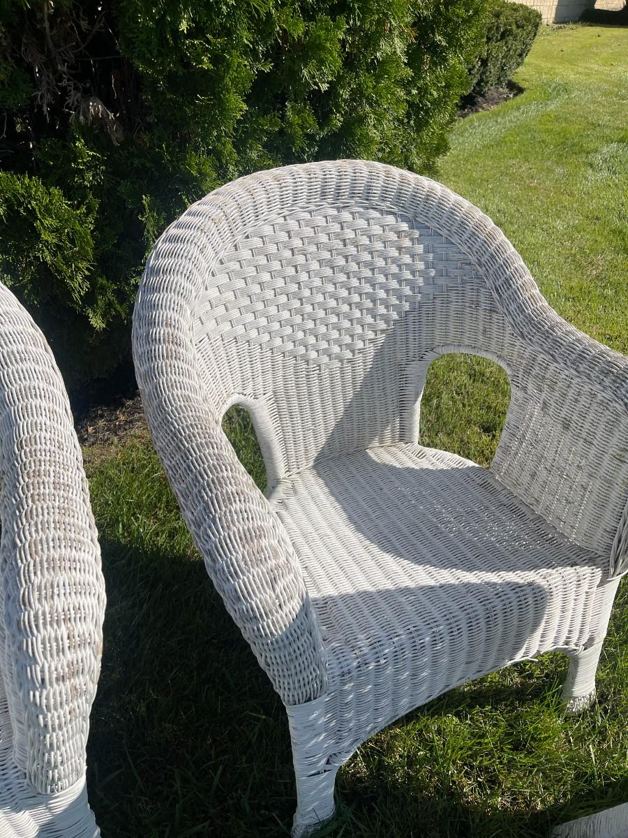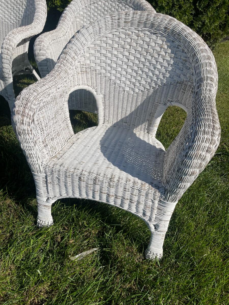 Set of 4 vintage white wicker arm chairs. Good condition, definitely show some wear.