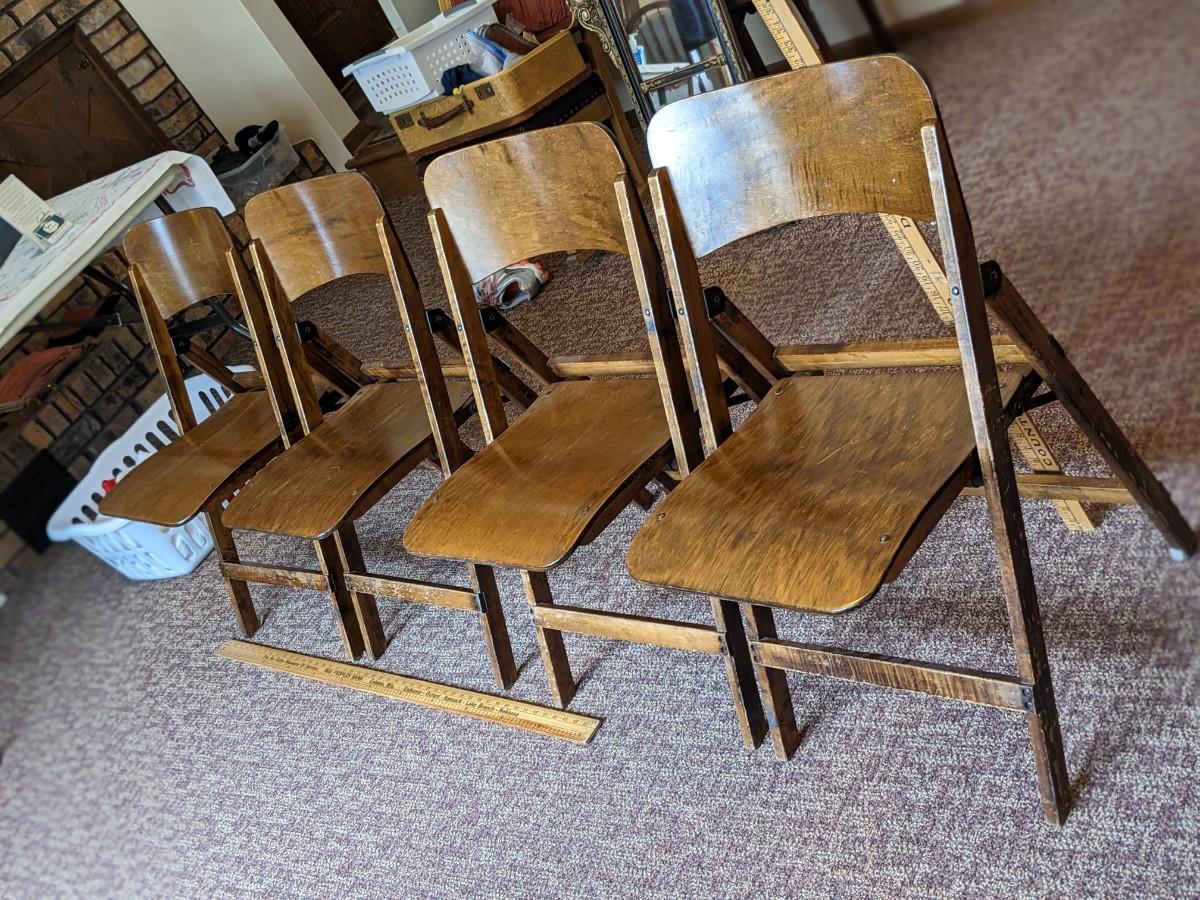 Set of 4 Vintage Wooden Folding Chairs