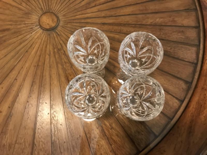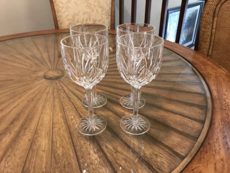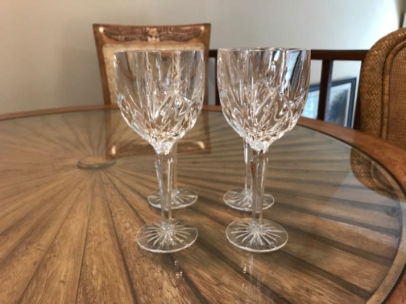 4 Crystal Wine Glasses by Waterford. Great condition, no chips. Glasses are marked along bottom edge.