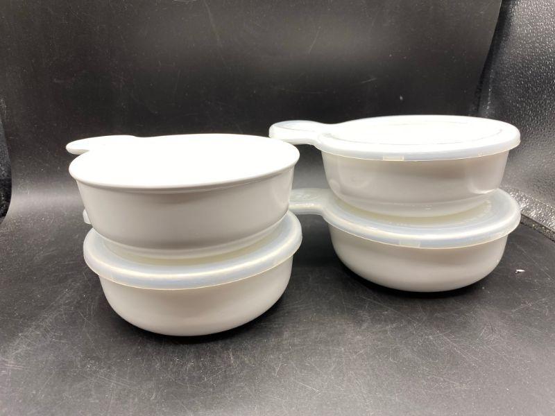Set of 4 White Corning Grab It Soup Bowls with 3 Lids YD#011-1120-00385