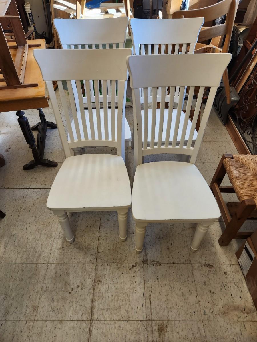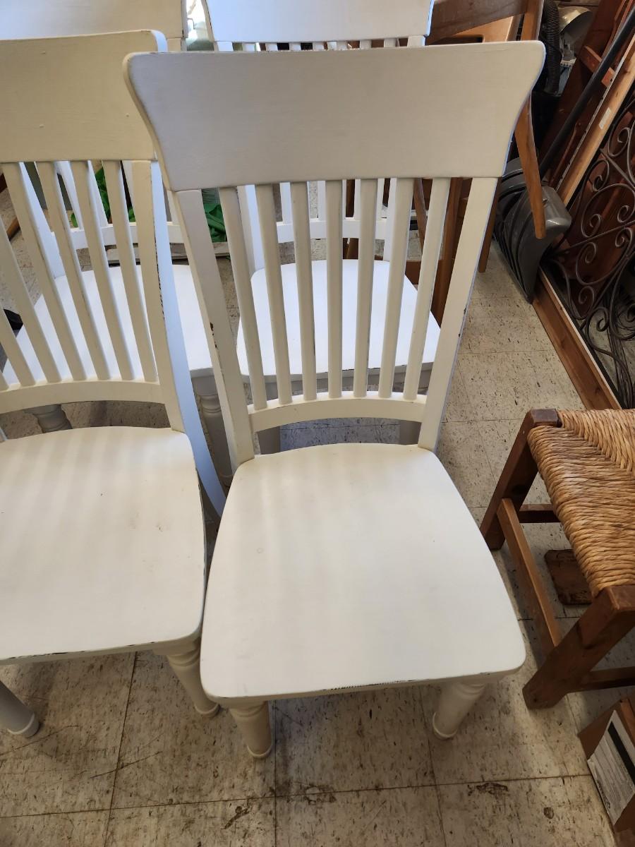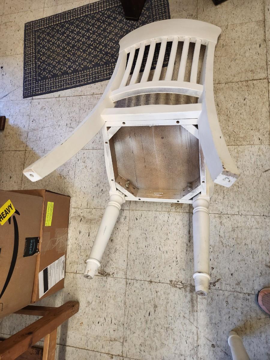 Awesome sprayed white farmhouse chairs. These babies are solid!!