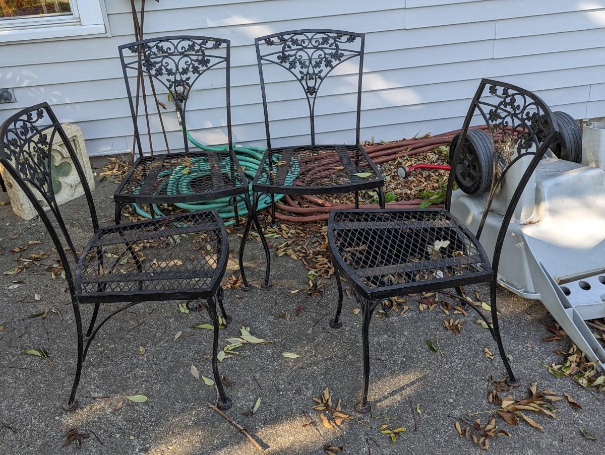 Set of 4 Wrought Iron Vintage Garden Chairs