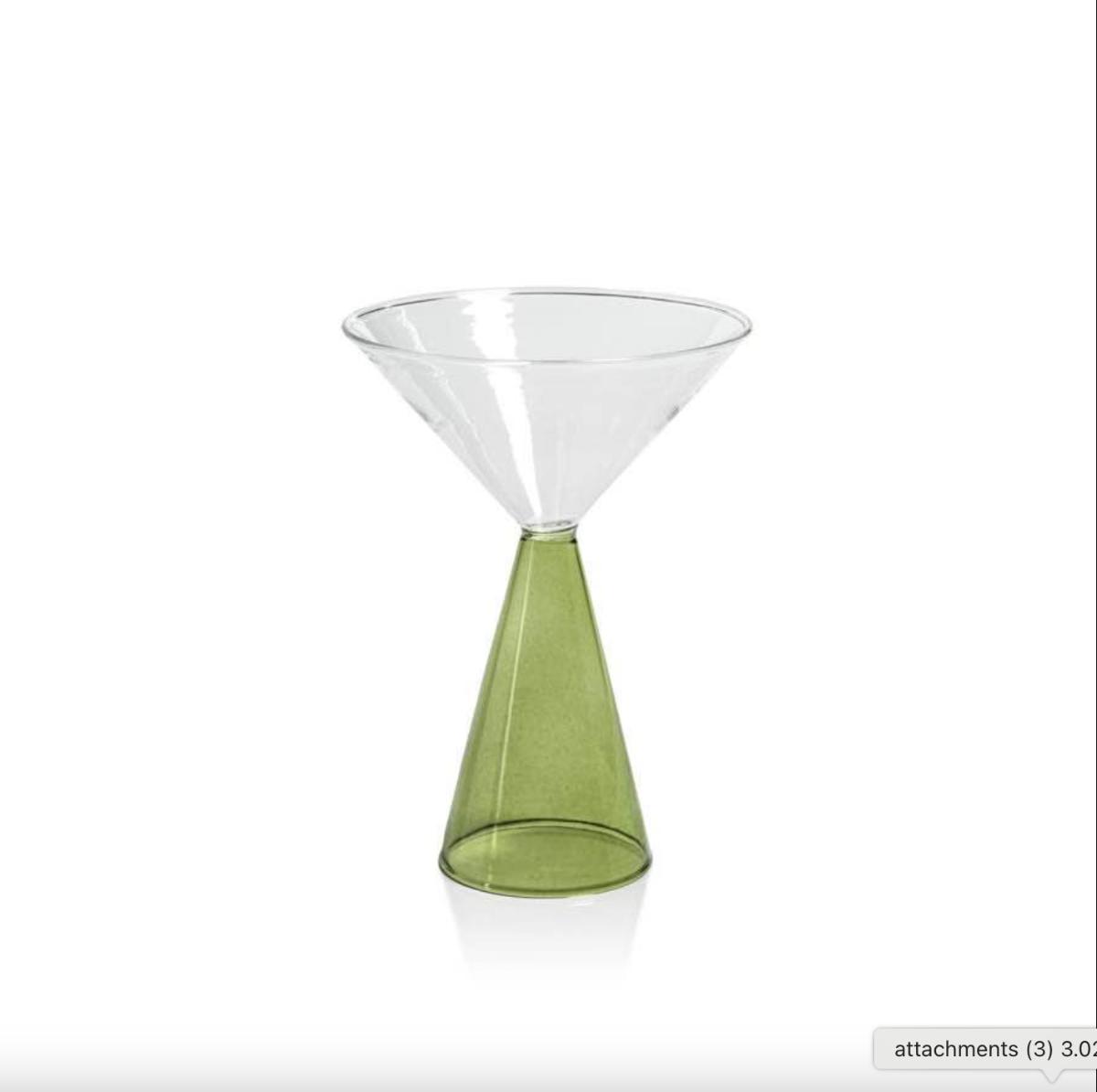 Set of 4 Zodax Veneto Borosilicate Glass Martini Cocktail Glasses in Clear & Green Glass