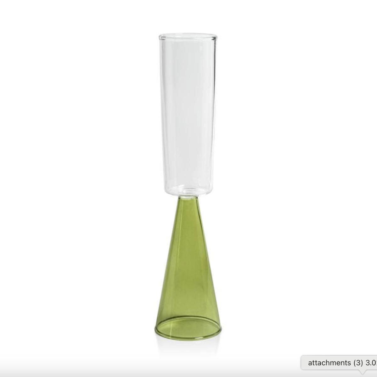 Set of 4 Zodax Veneto Borosilicate Glass Champagne Flute Glasses in Clear & Green Glass