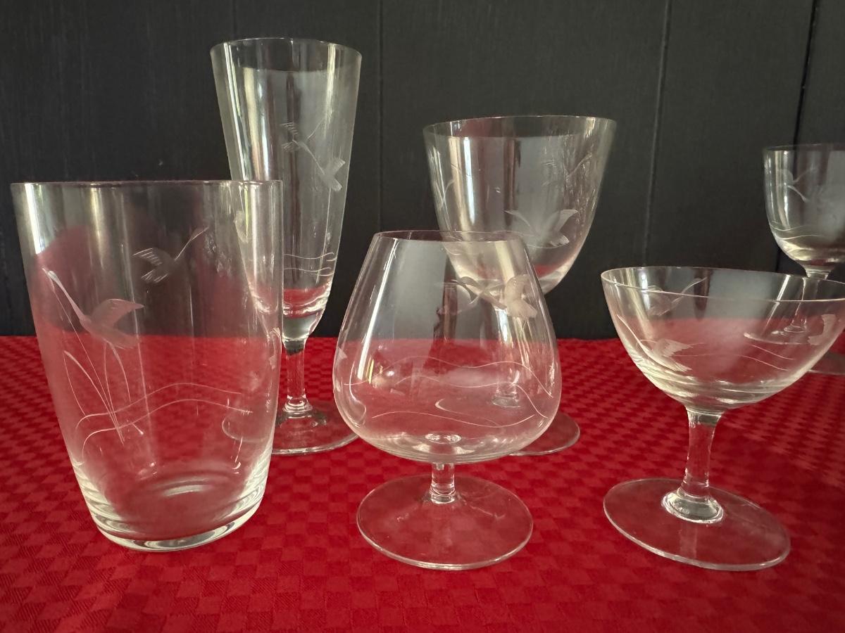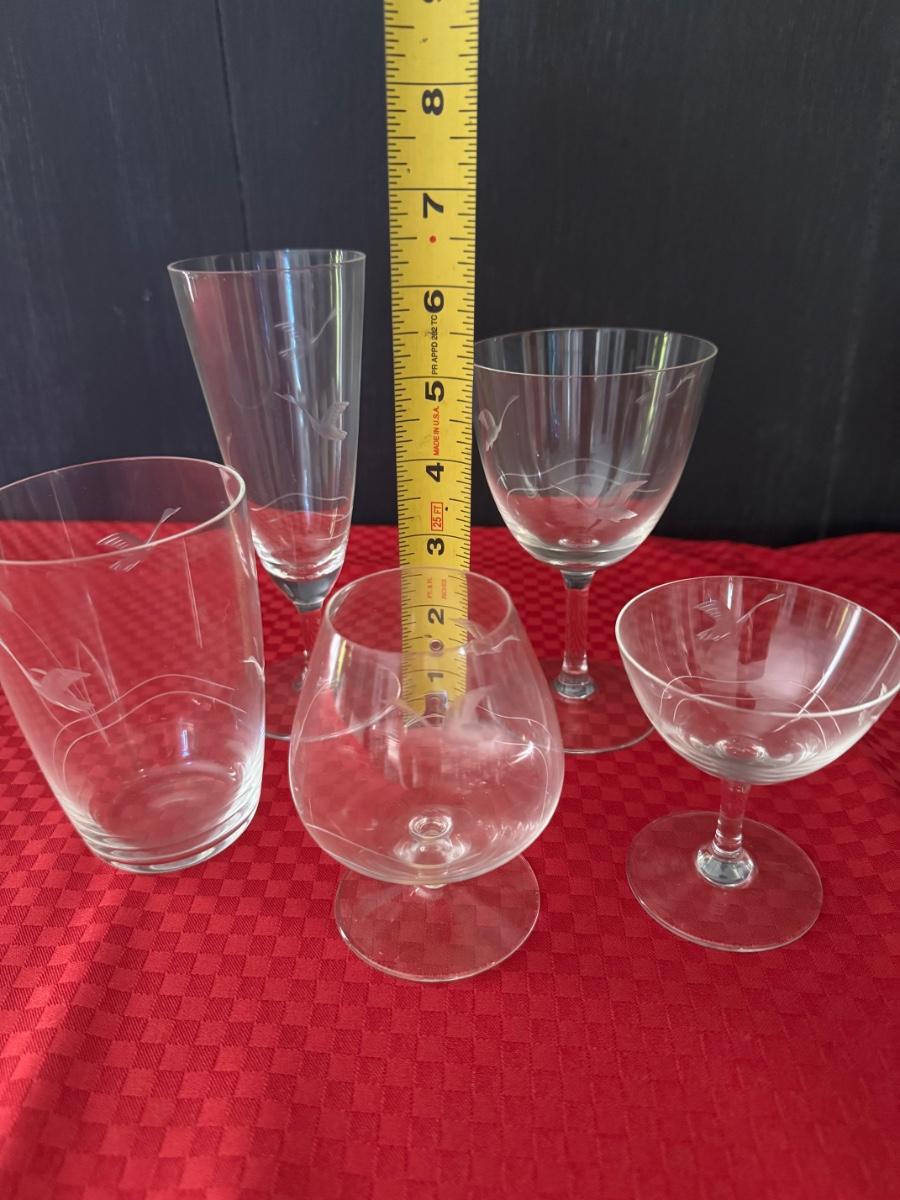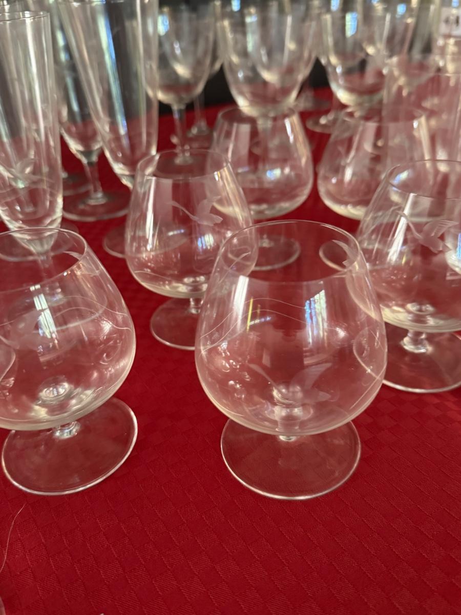 Set of 60 Vintage Etched Glasses - Bird Motif