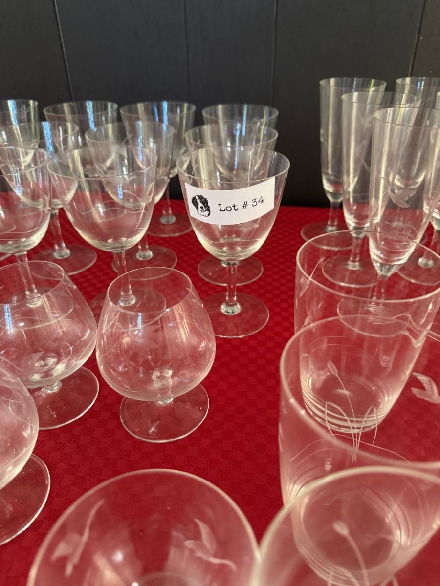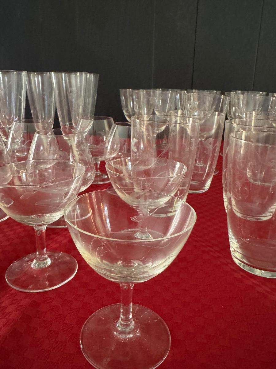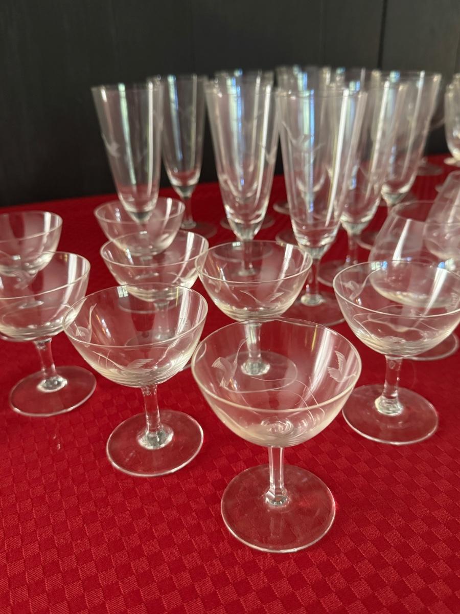Set of 60 Vintage Etched Glasses - Bird Motif