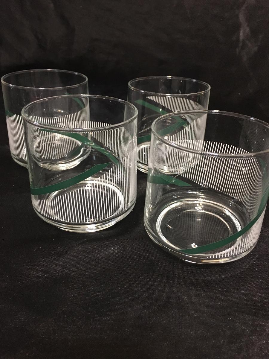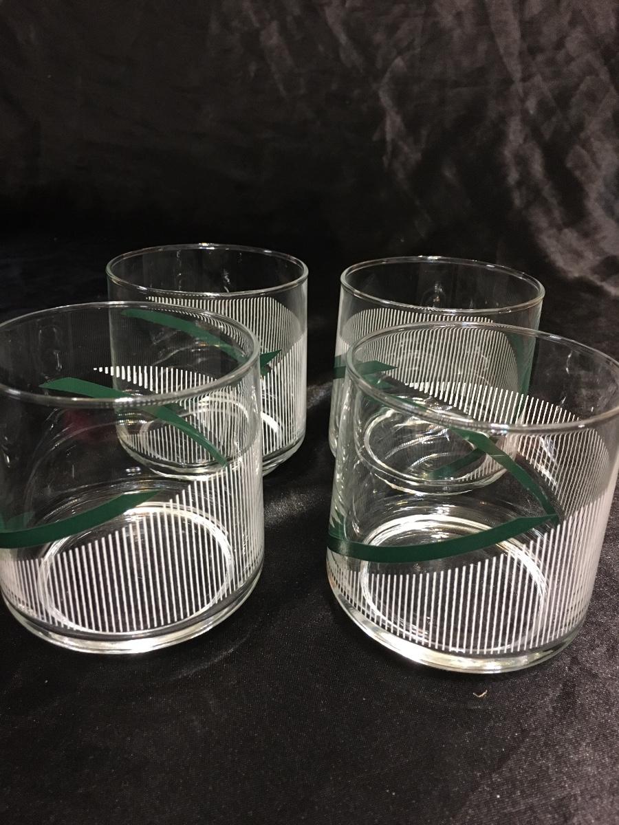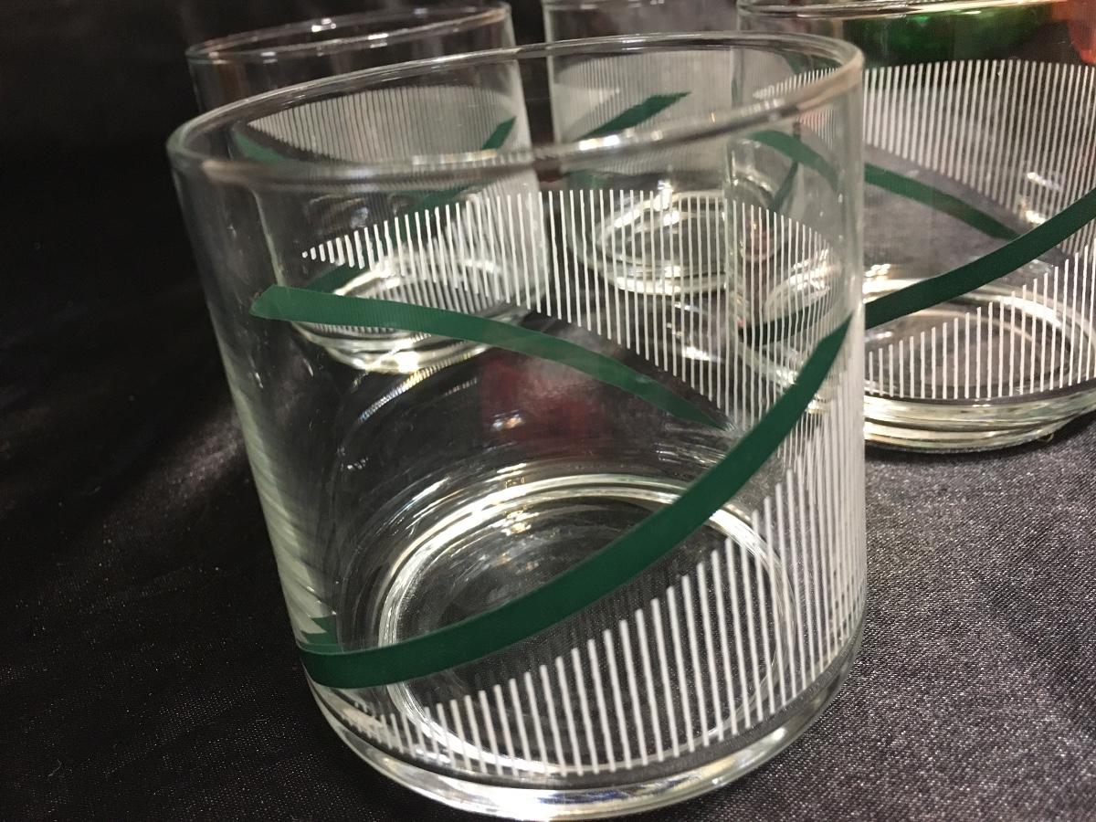 Set of 4Vintage GreenWhite Striped Retro Drinking Glasses