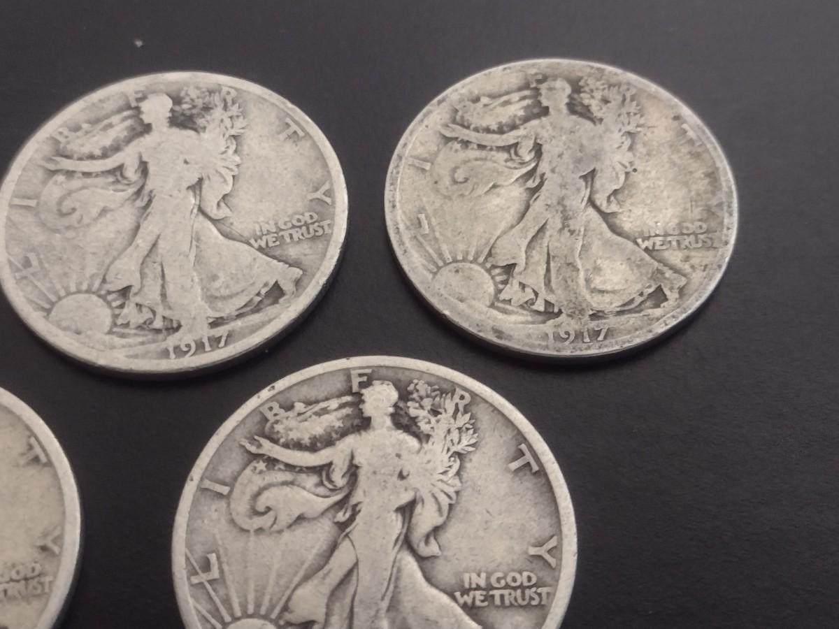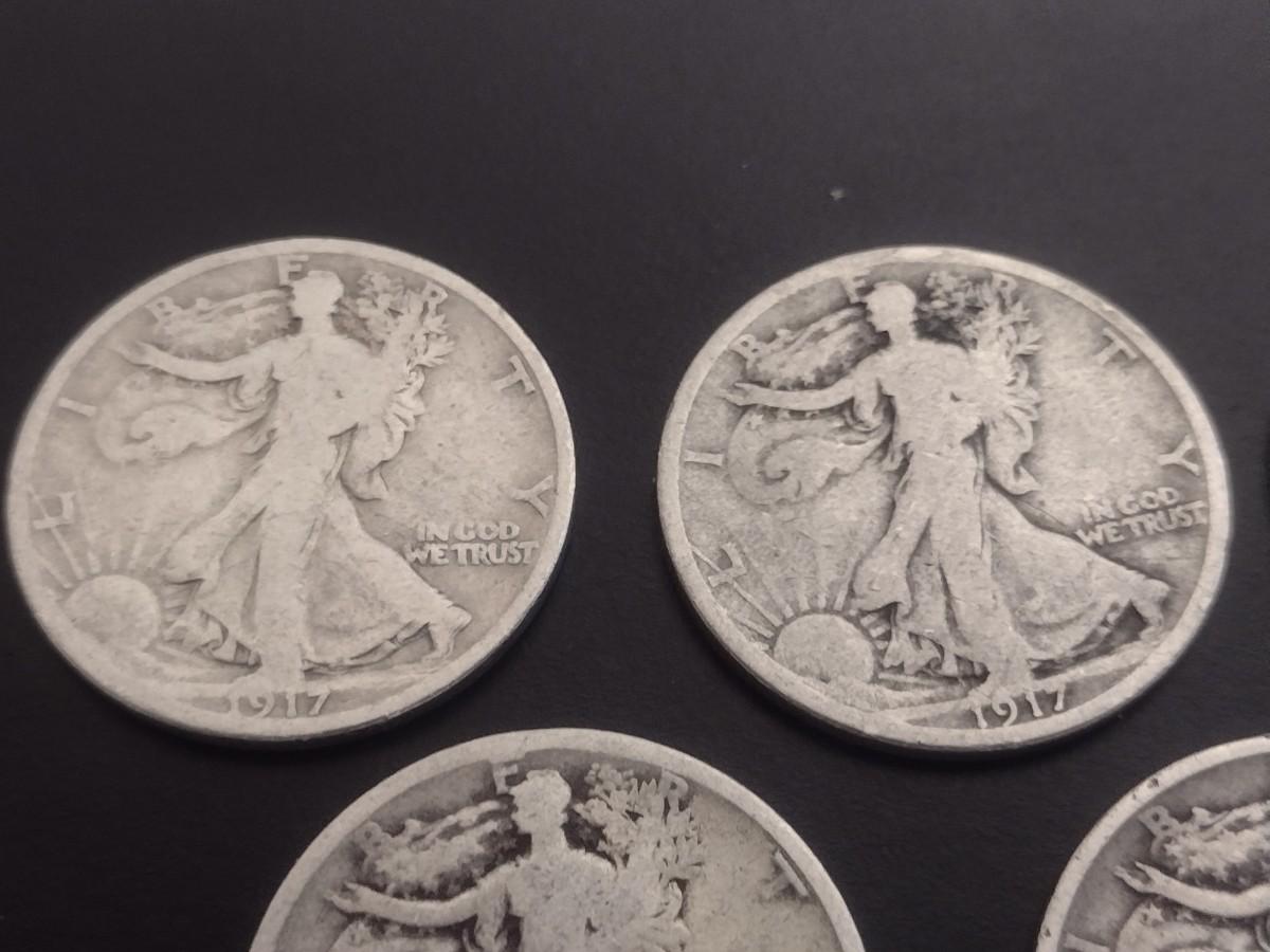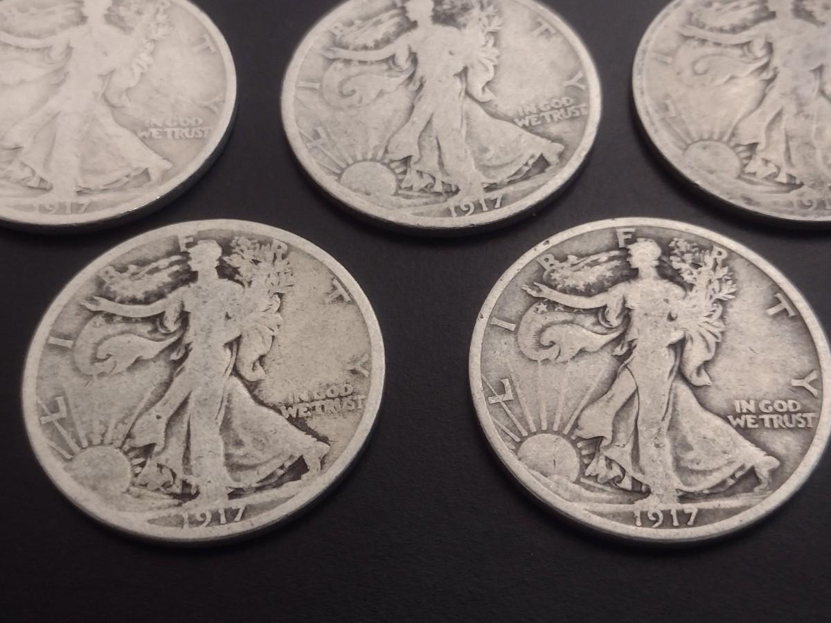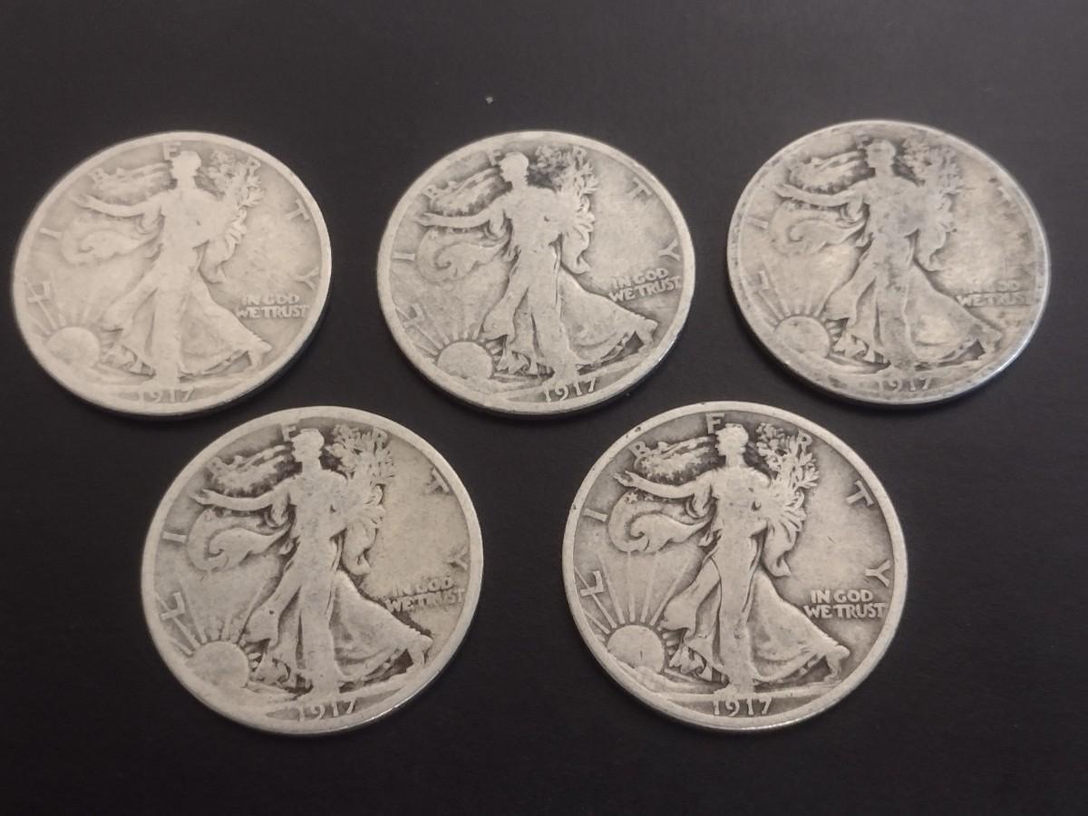 Set of 5 1917 U.S. Mint Walking Liberty Silver Half-Dollars Circulated (#109)