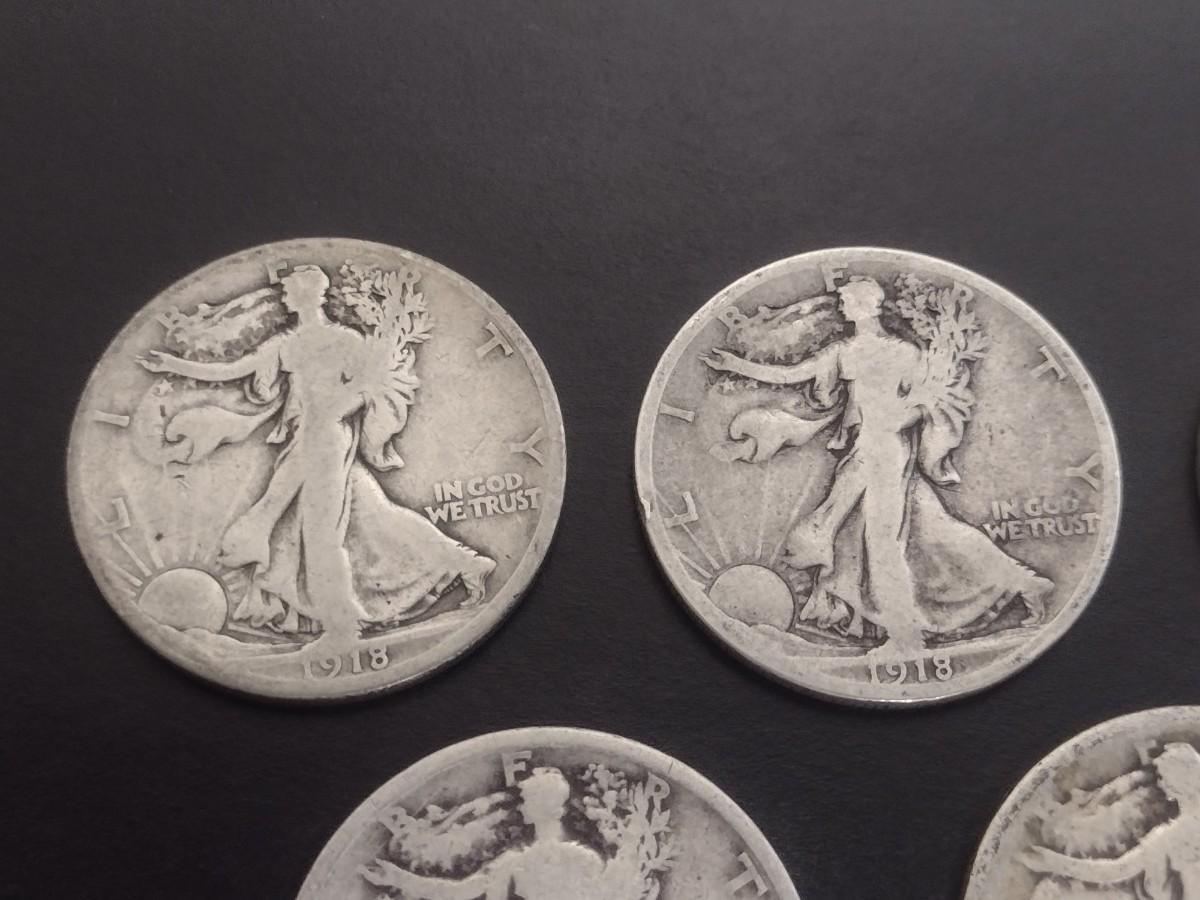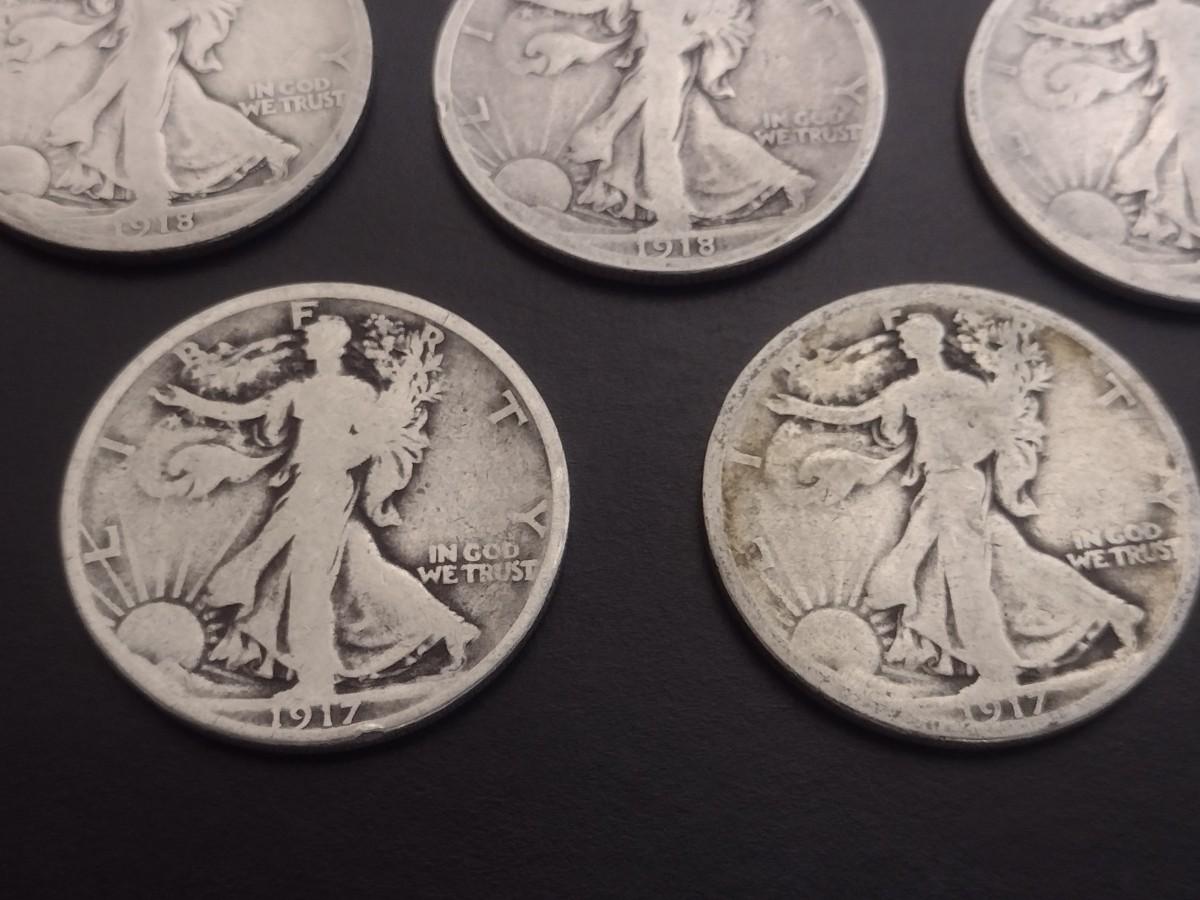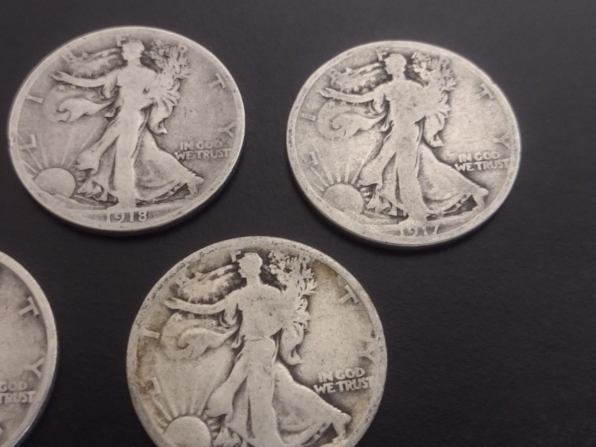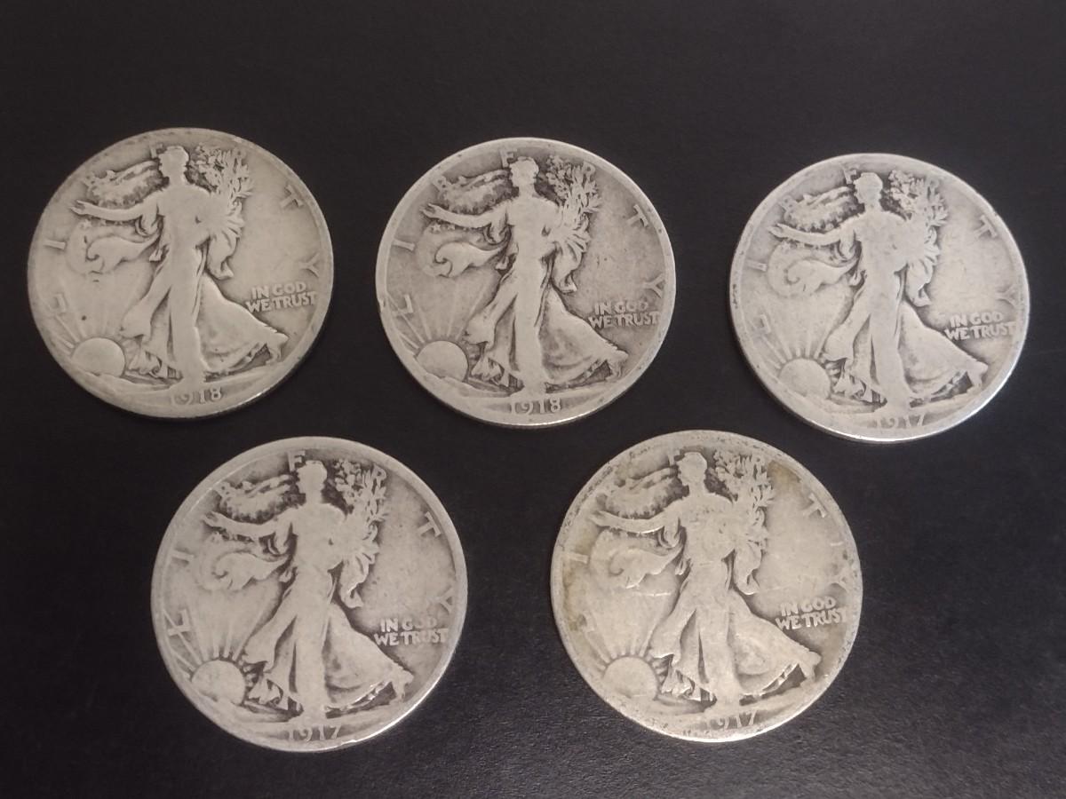 Set of 5 1917, 1918 U.S. Mint Walking Liberty Silver Half-Dollars Circulated (#110)