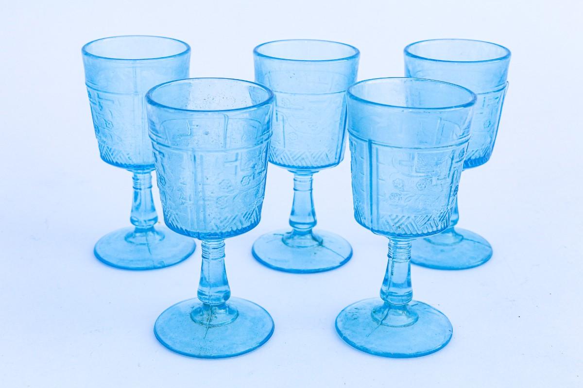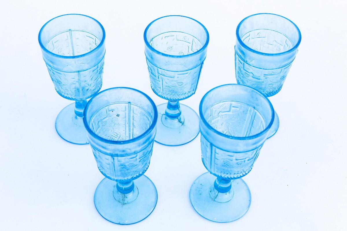 Set of 5 Antique Child's Play Blue Glass Goblets circa 1920s-1930s