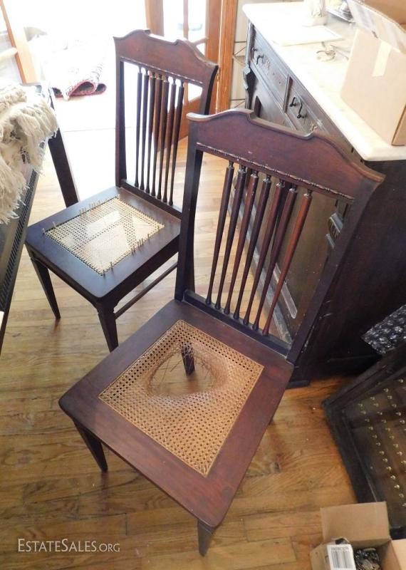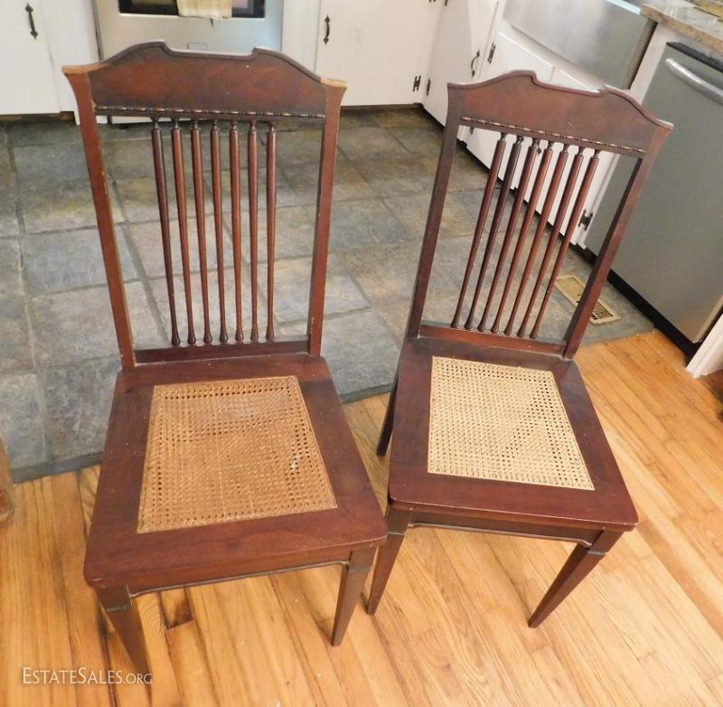 Set of 5 matching cane bottom chairs in various condition. Please see photos. All five for one bid.