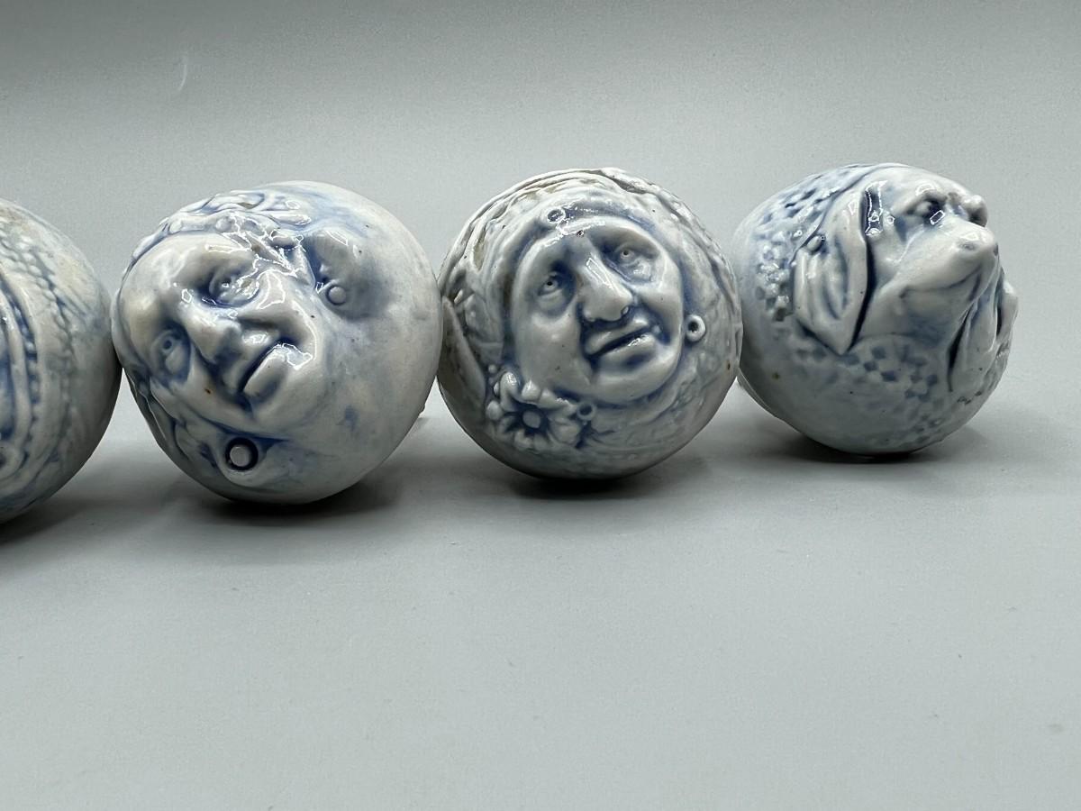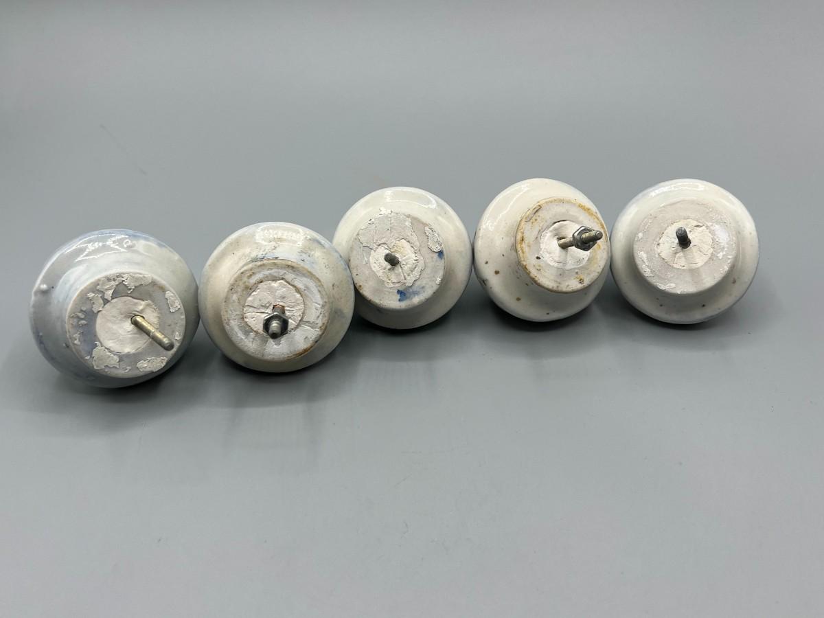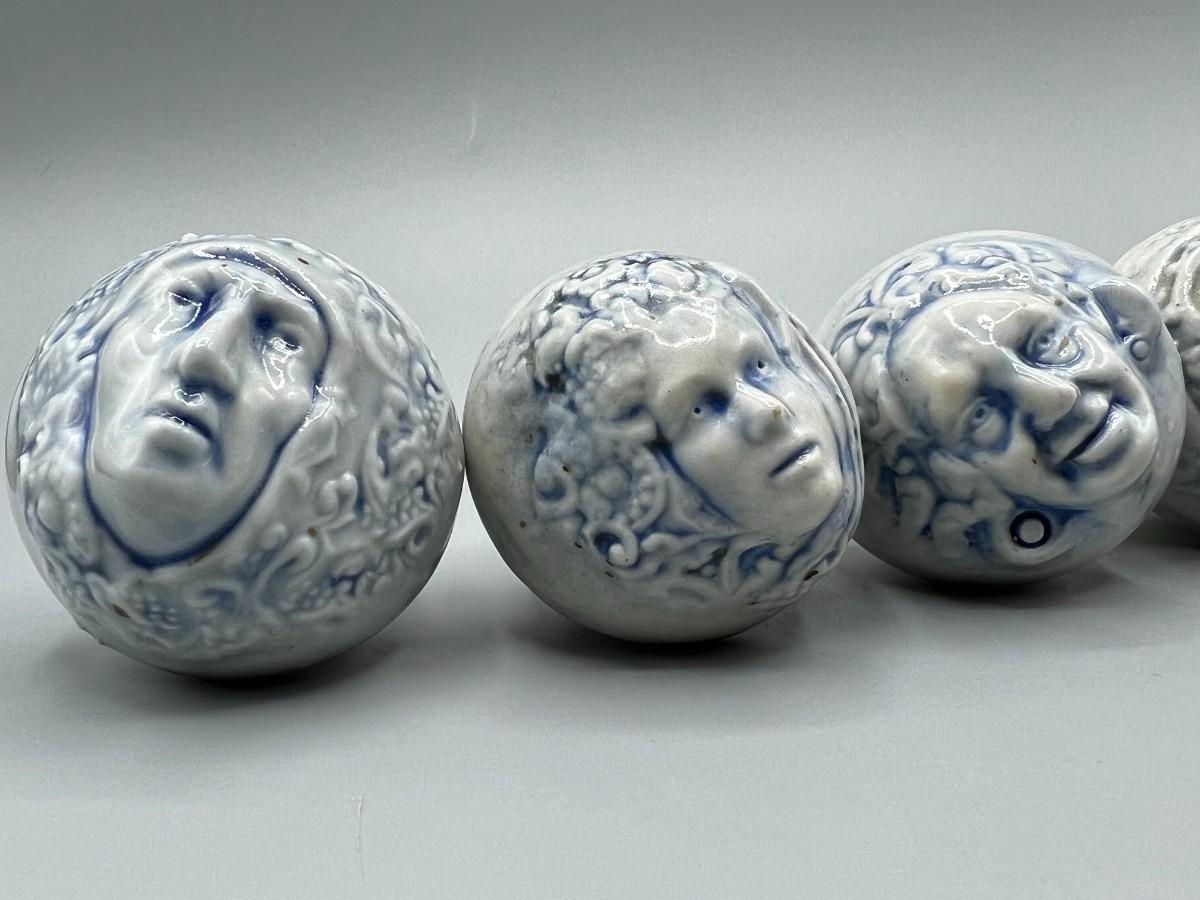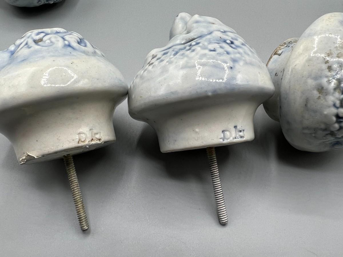 Set of 5 Ceramic Blue Tint Figura; Faces Drawer Pulls Knobs