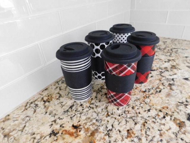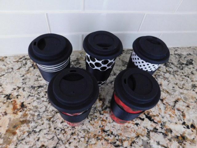 Set of 5 Ceramic To-Go Cups with Silicone Lids