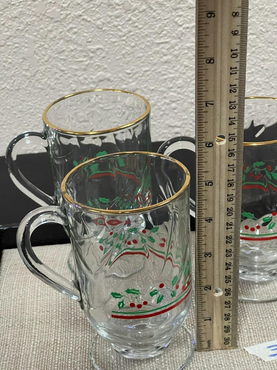 Set of 5 Christmas Holly Berries Irish Coffee Glass Mugs Gold Rim