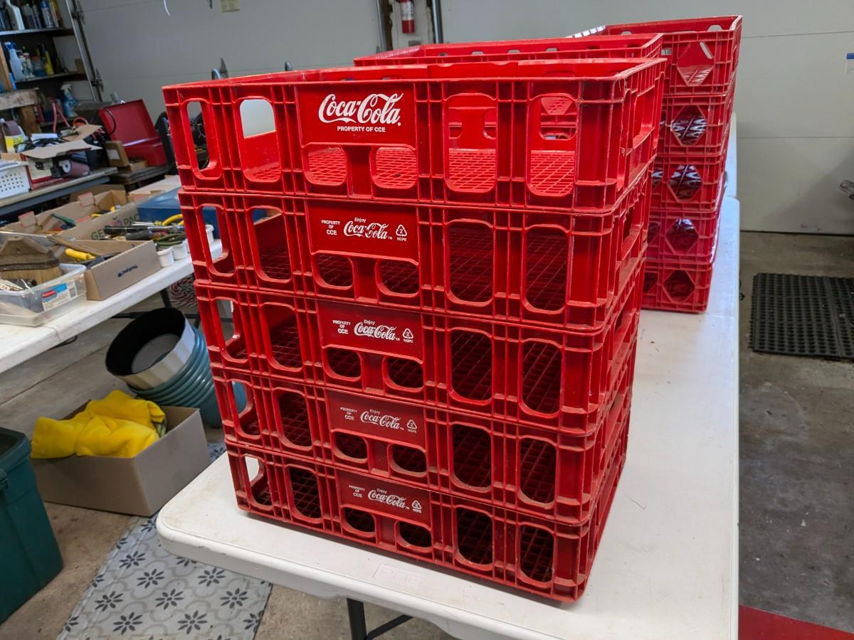 Set of 5 COCA COLA STACKABLE RED PLASTIC CRATE BOTTLE CARRIER CASE