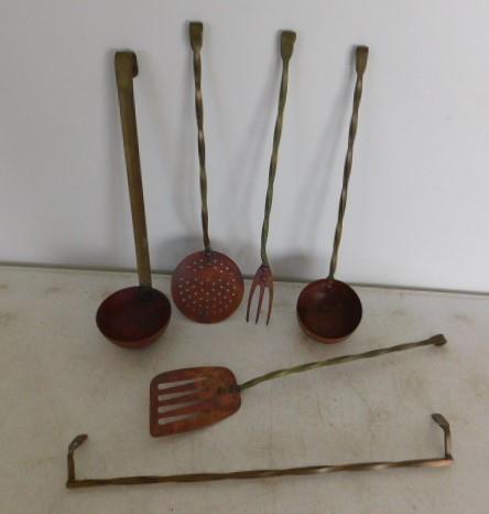 Set of 5 Copper Utensils with Hanging Bar